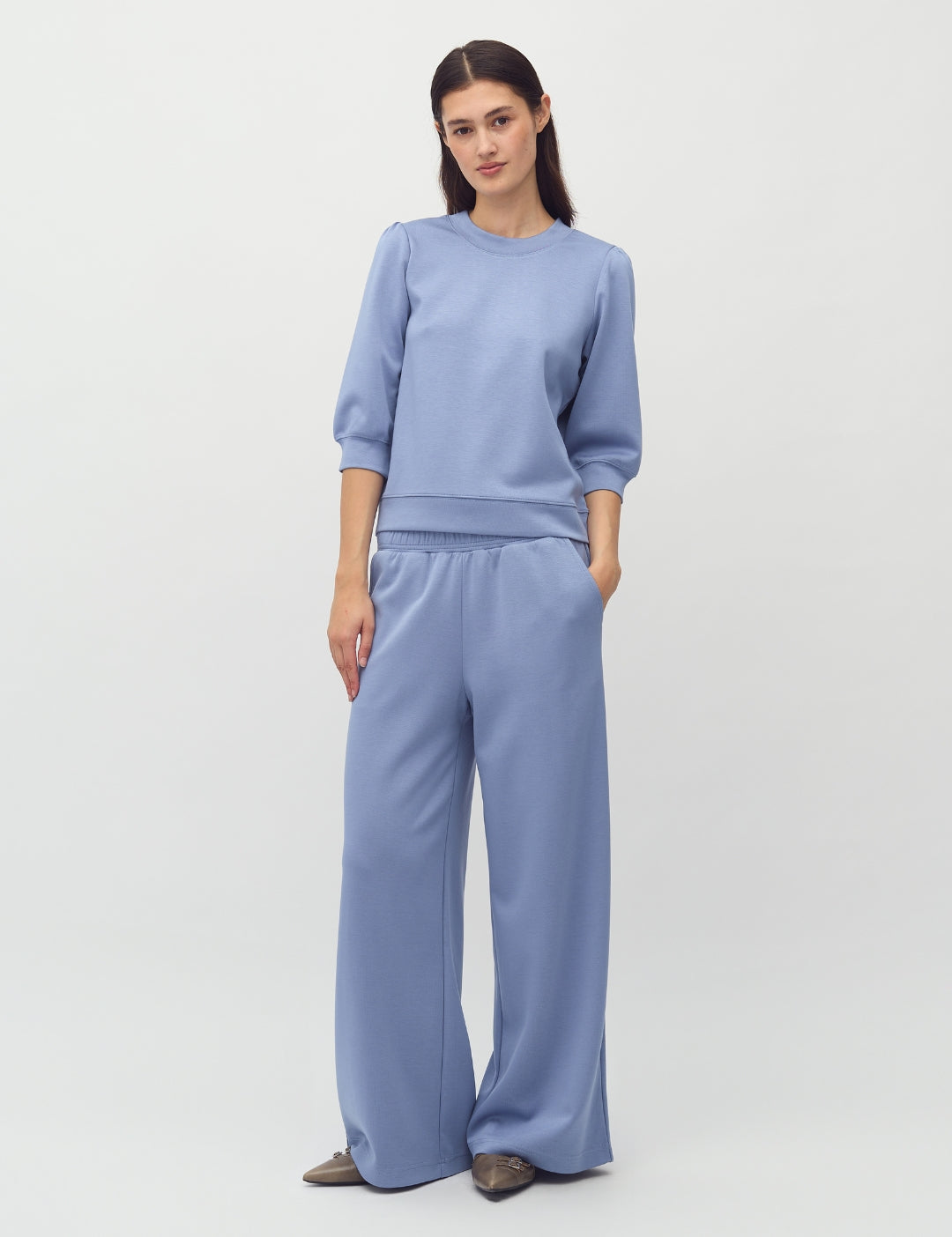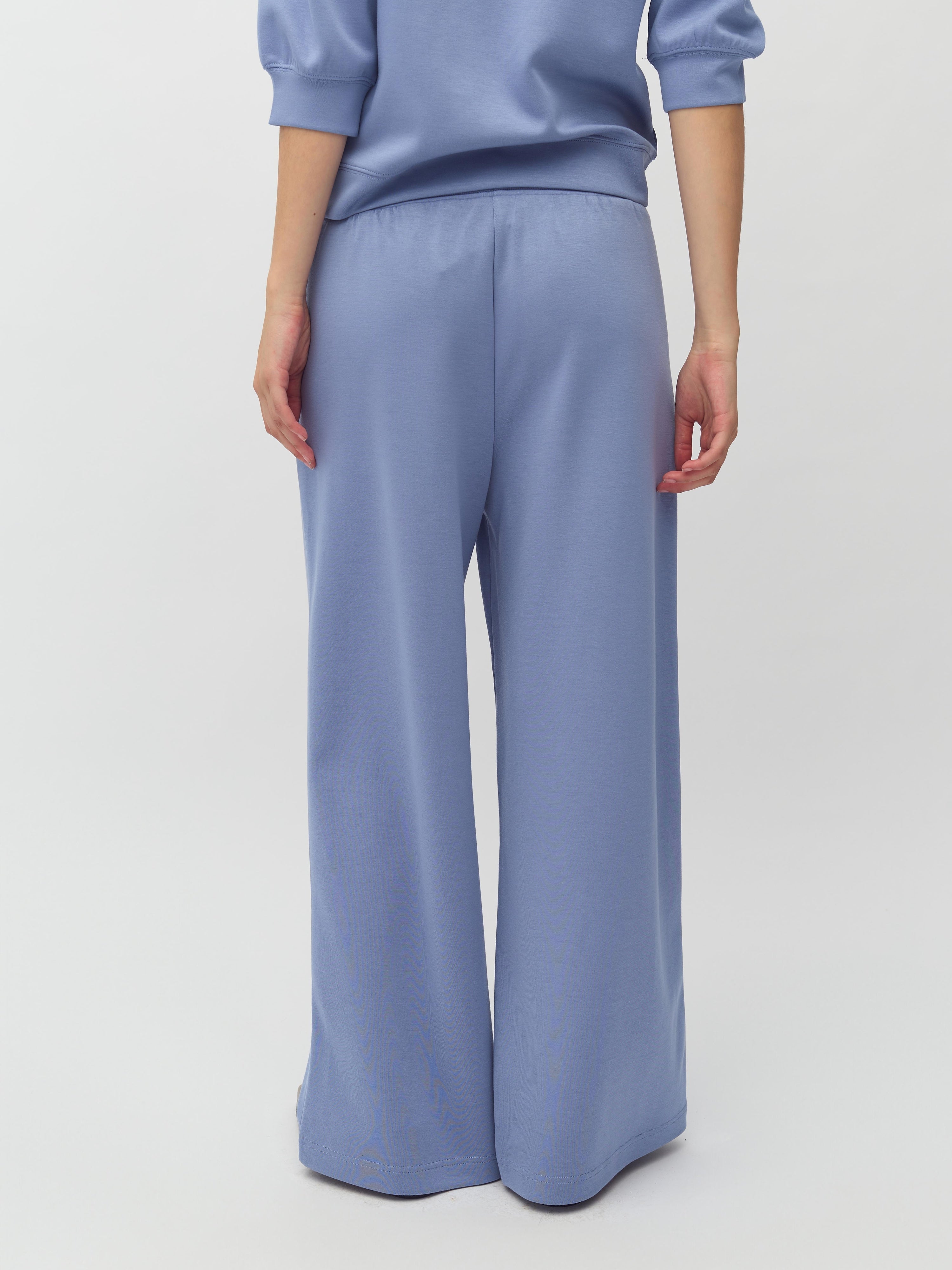 Wide trousers with side pockets.
