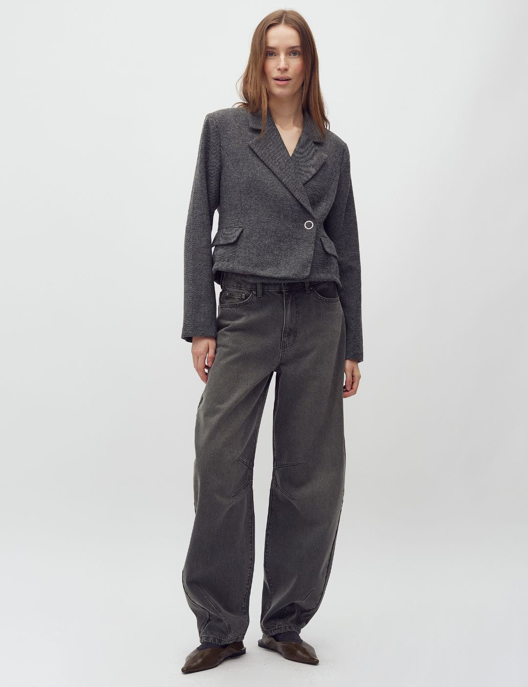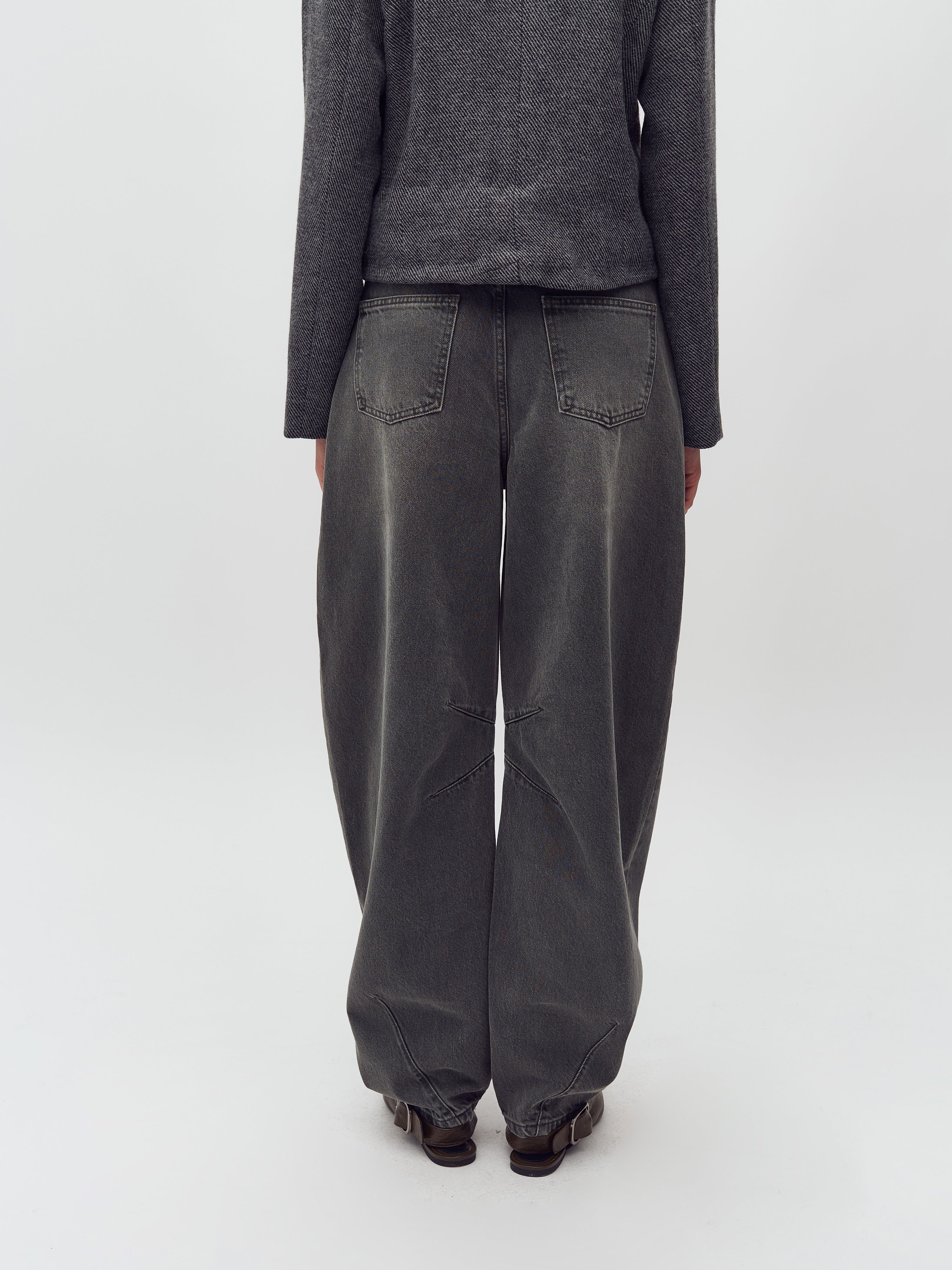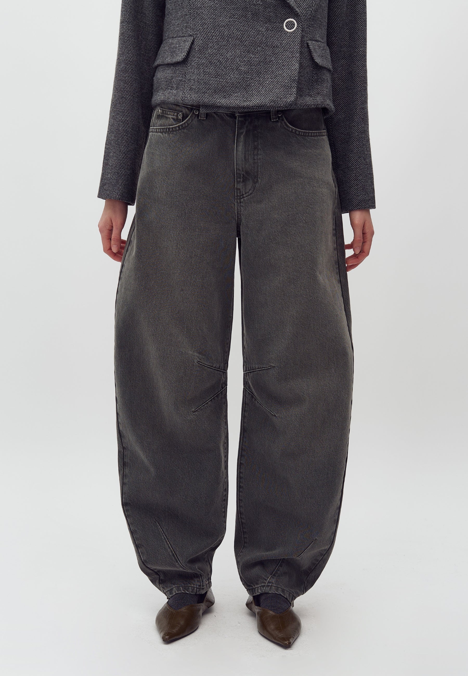 Barrel jeans in khaki green wash.