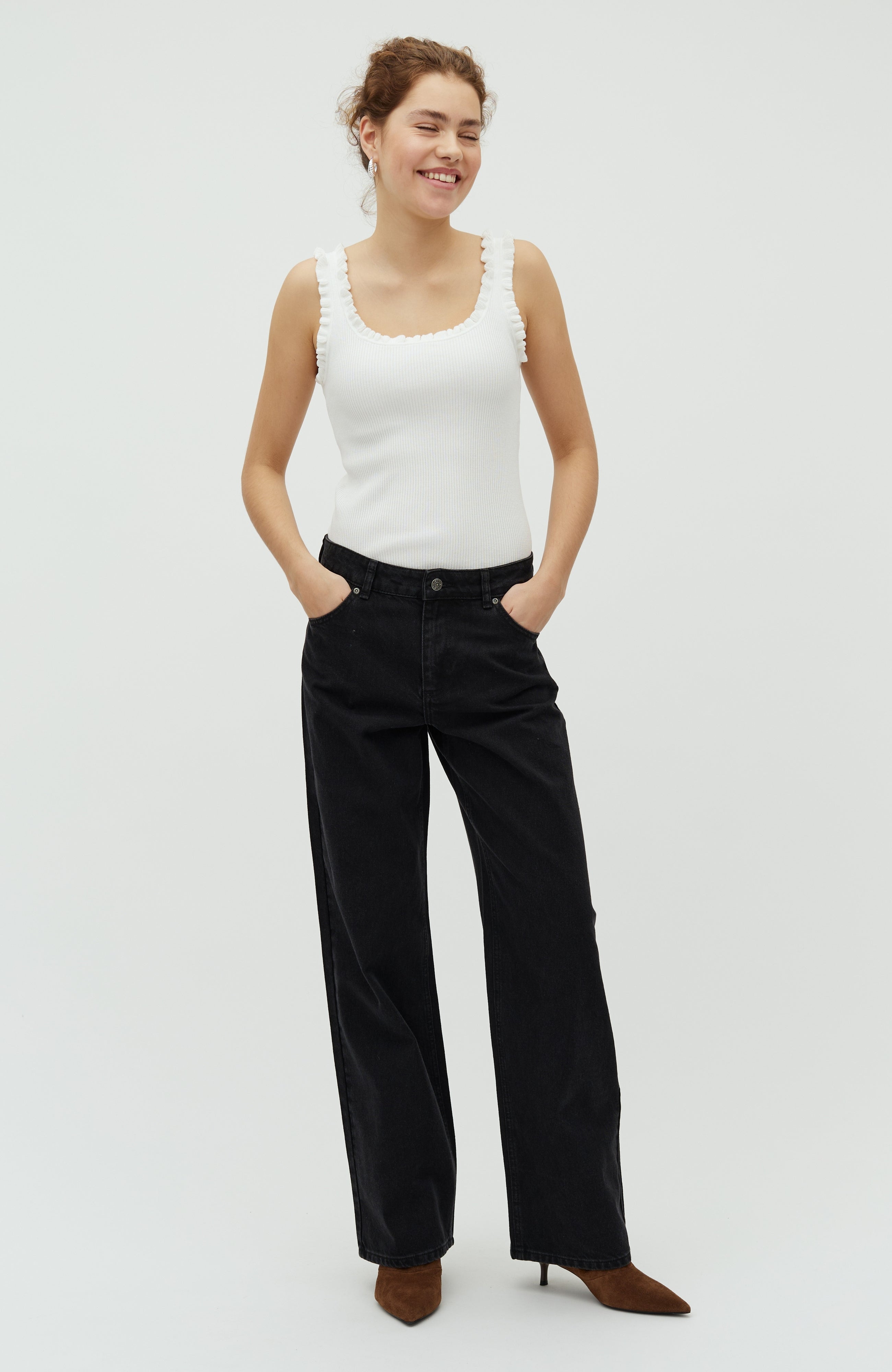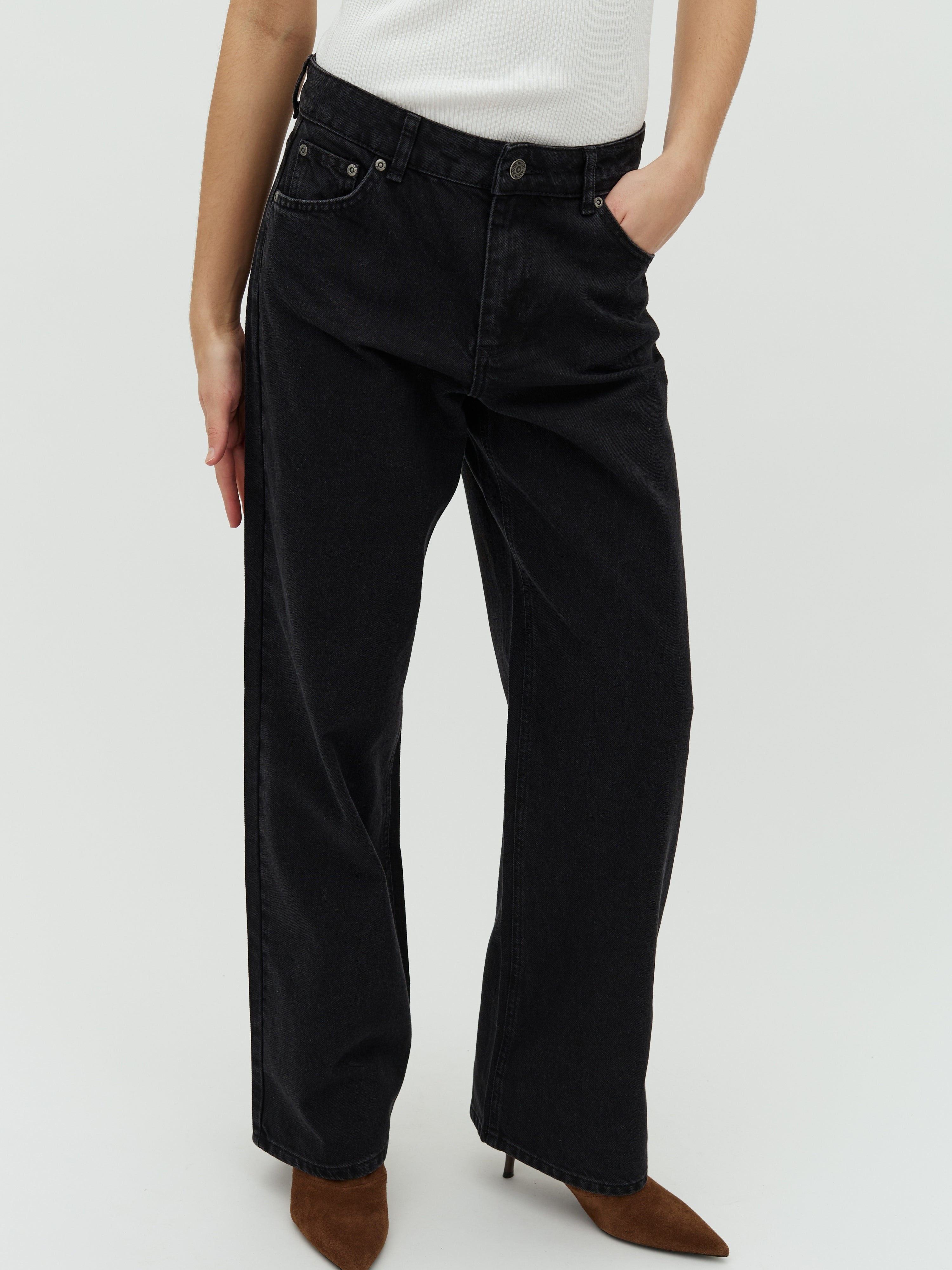 Mid waist jeans.