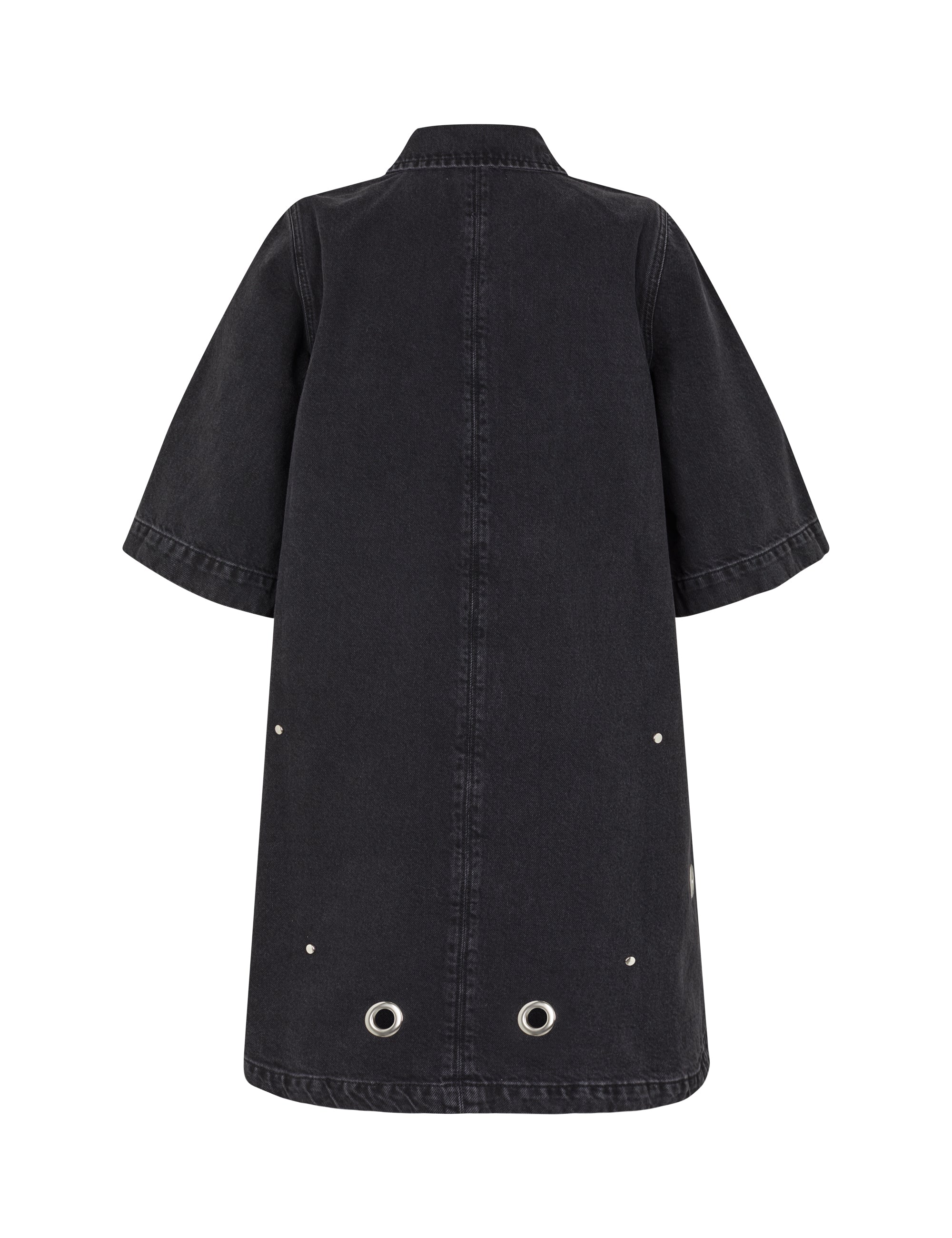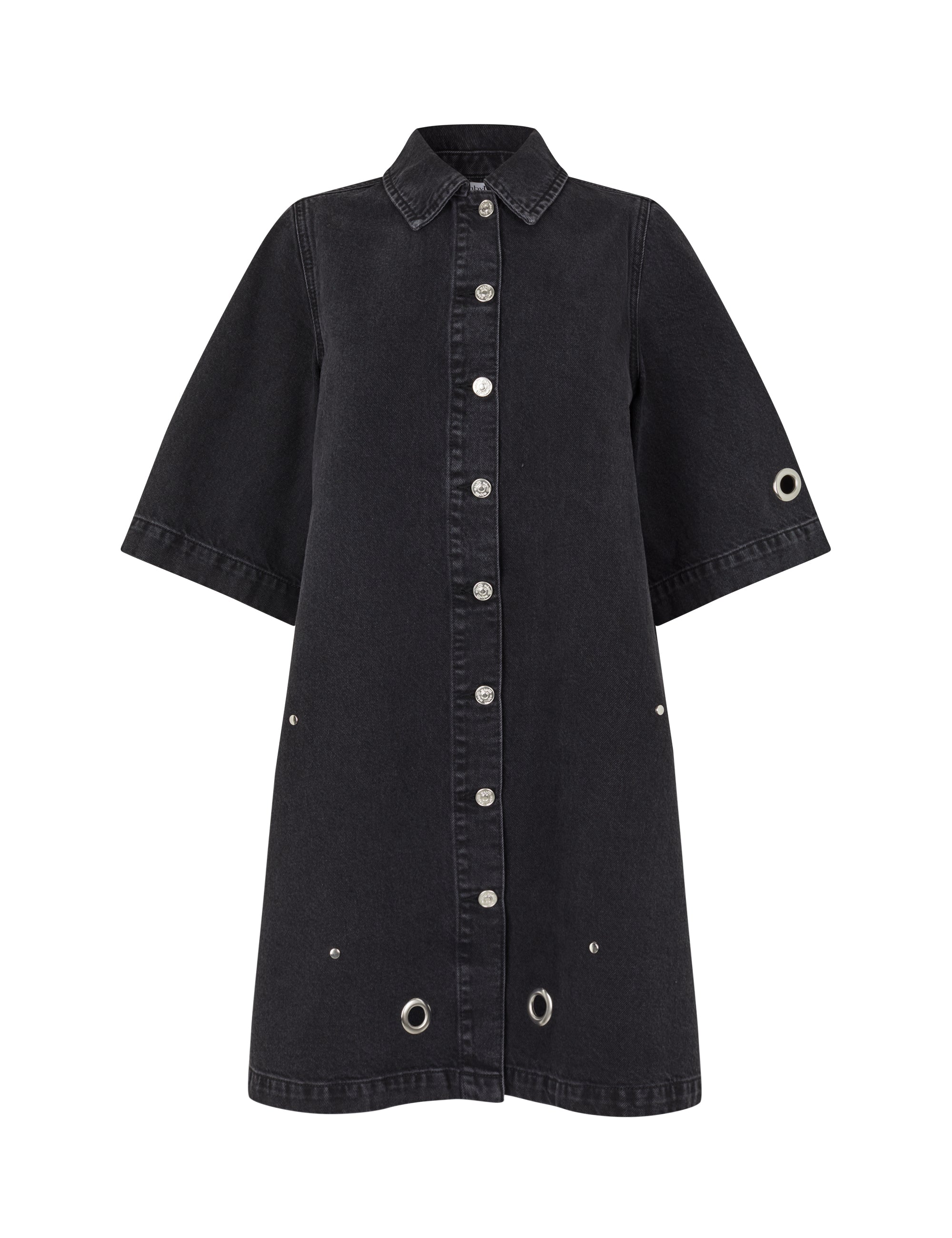 Denim dress with eyelets.