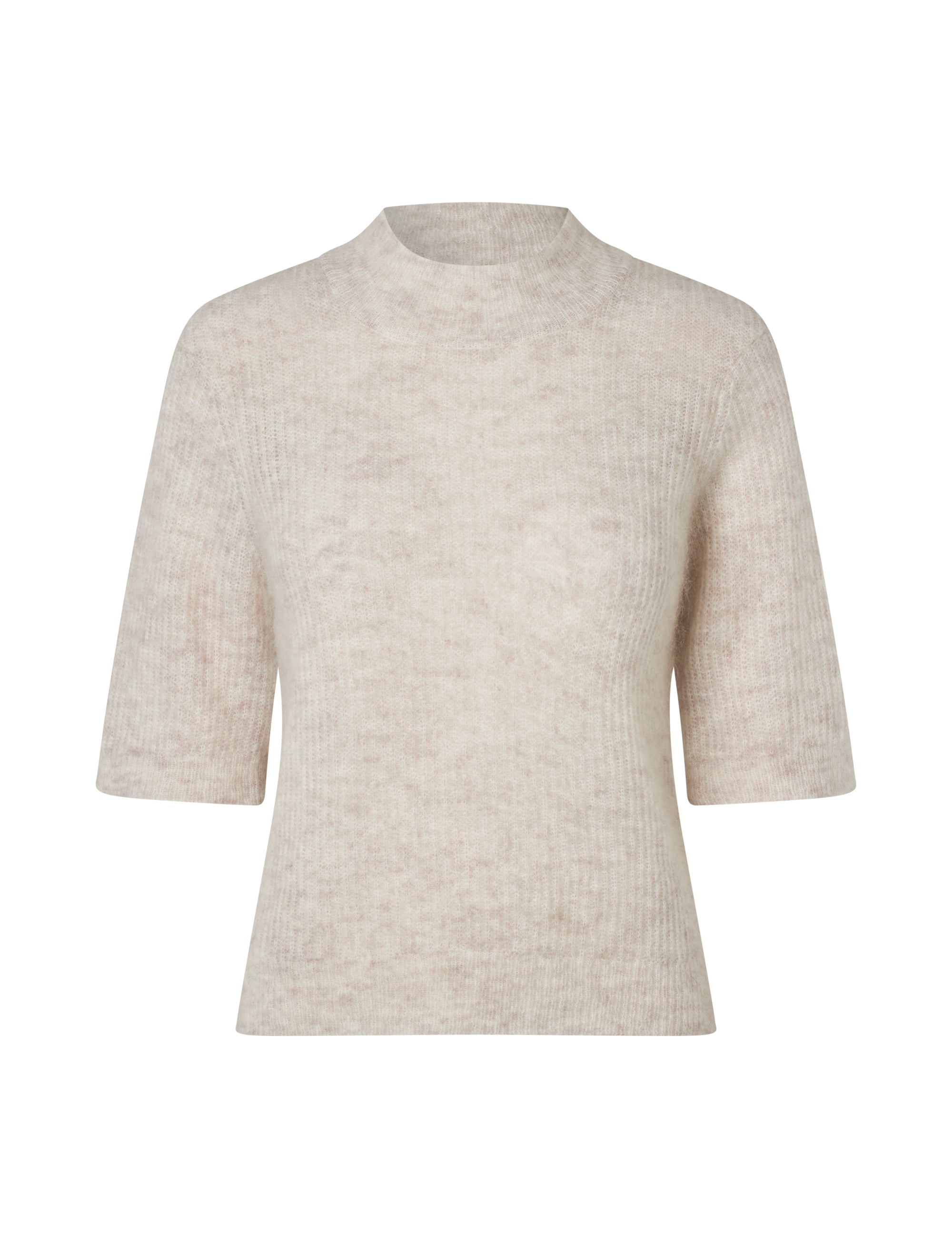 Short-sleeved thin knit with high neck.