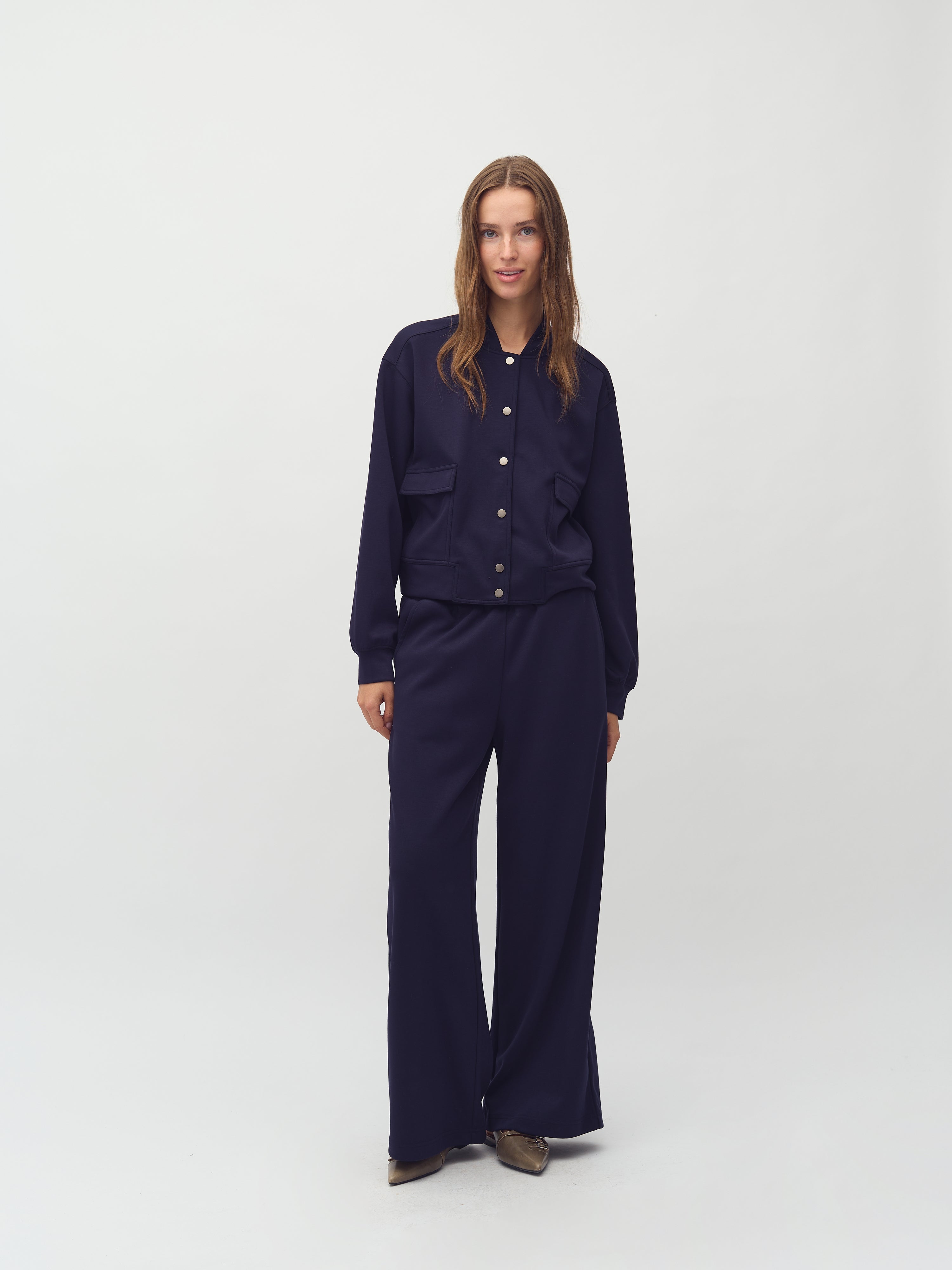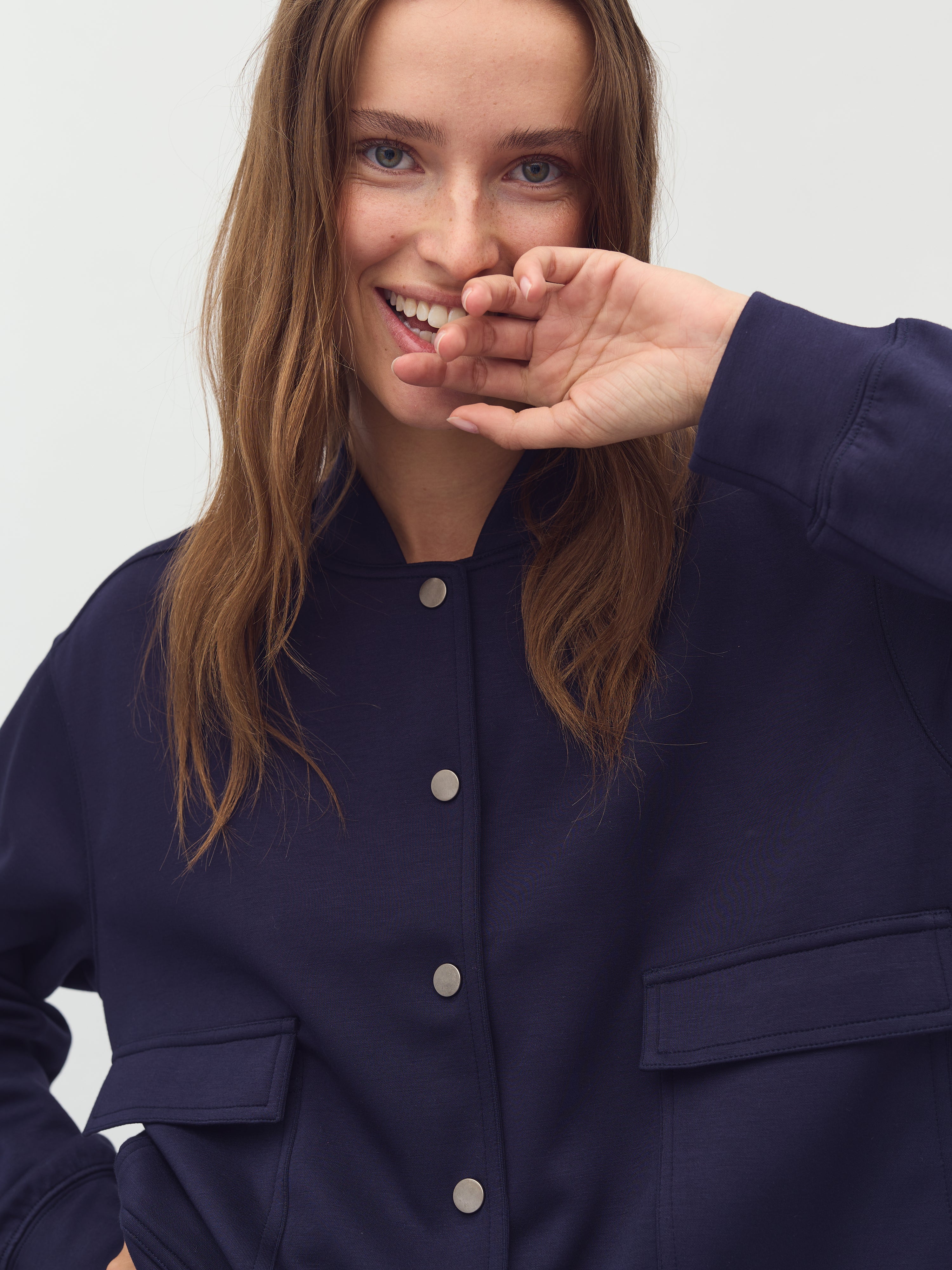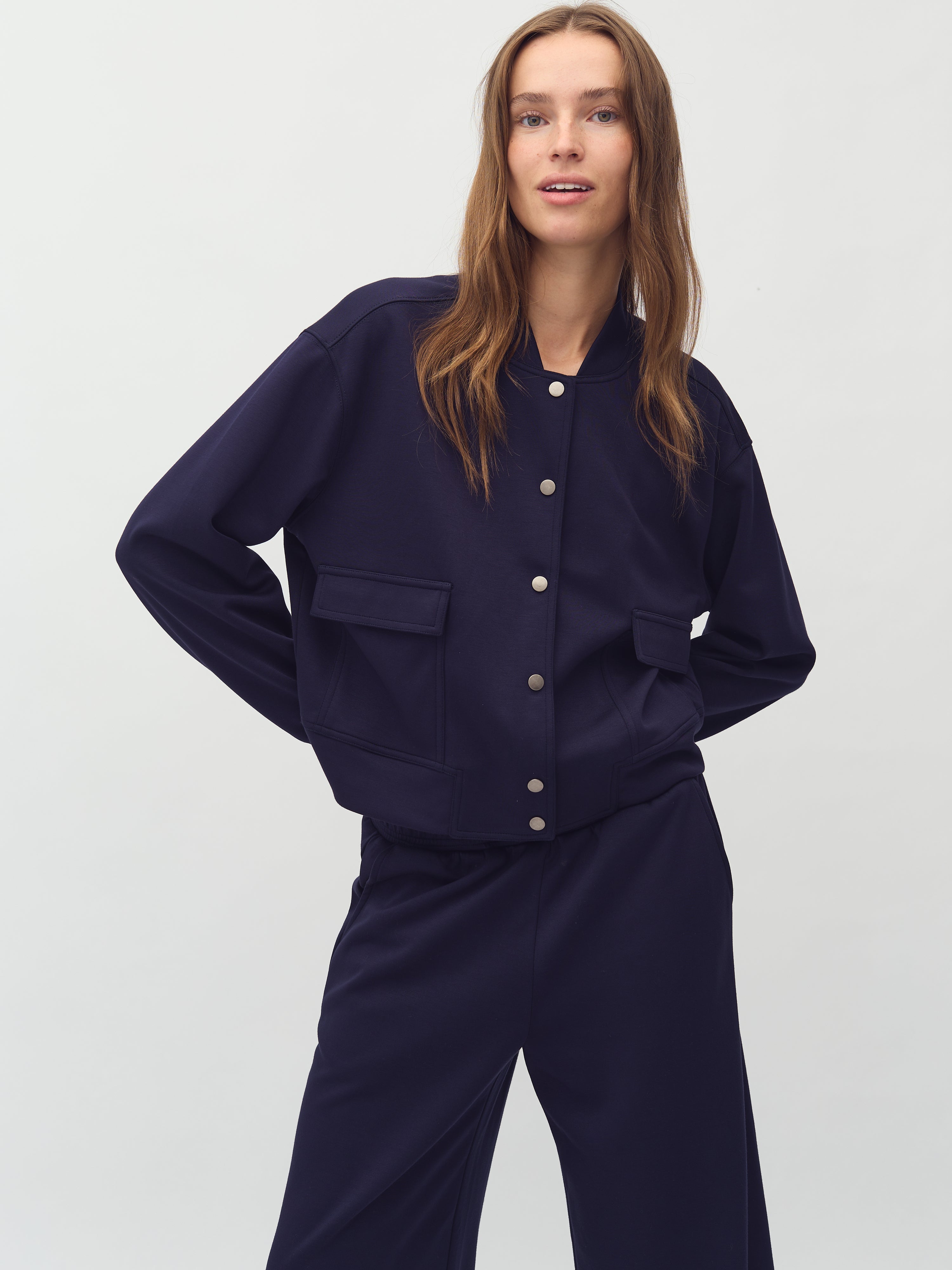 Bomber jacket with snap buttons.