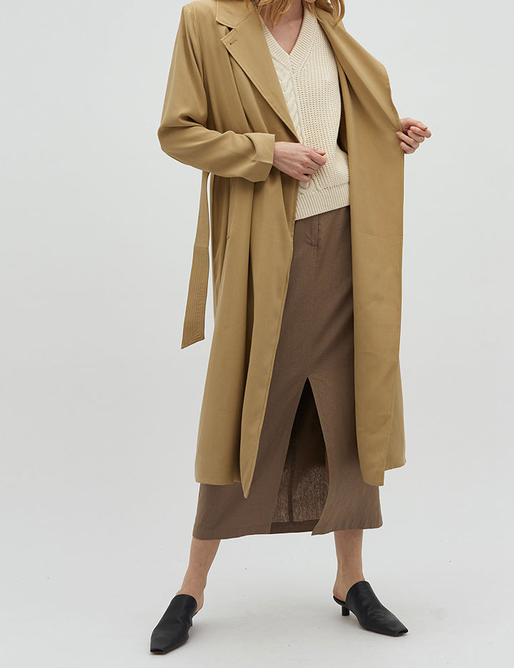 Trench coat with matching belt.