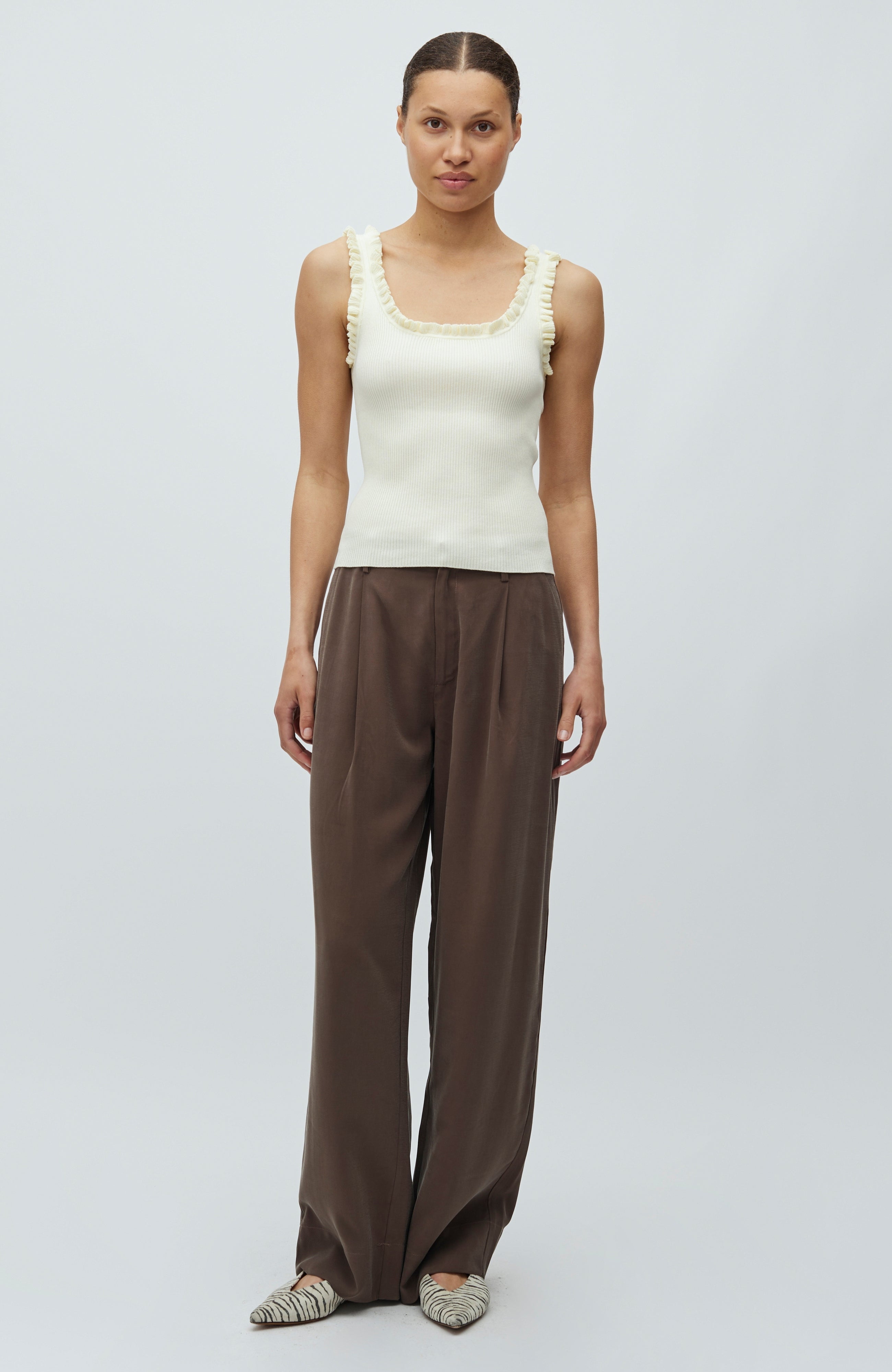 Thin knitted top with ruffles.
