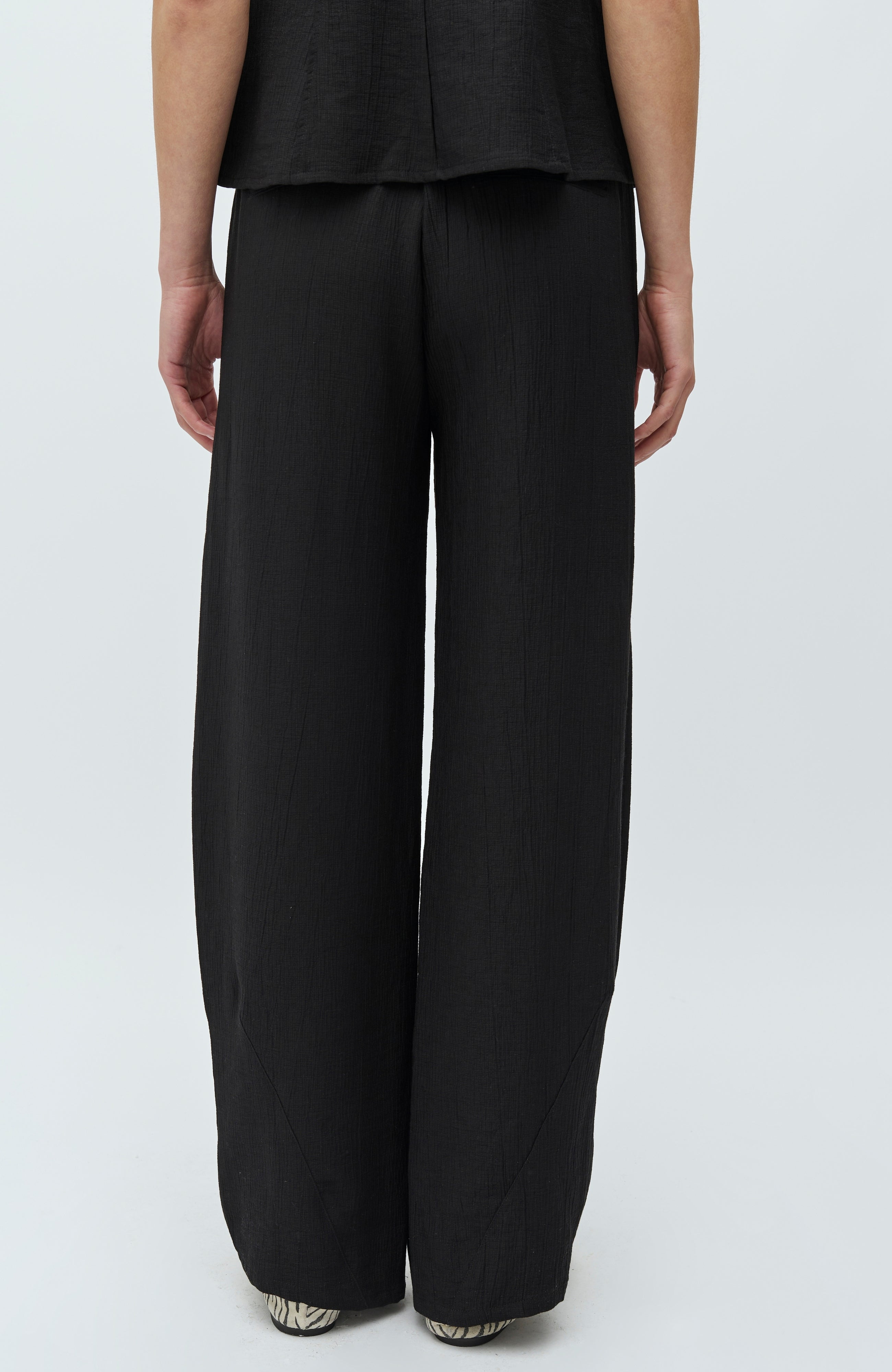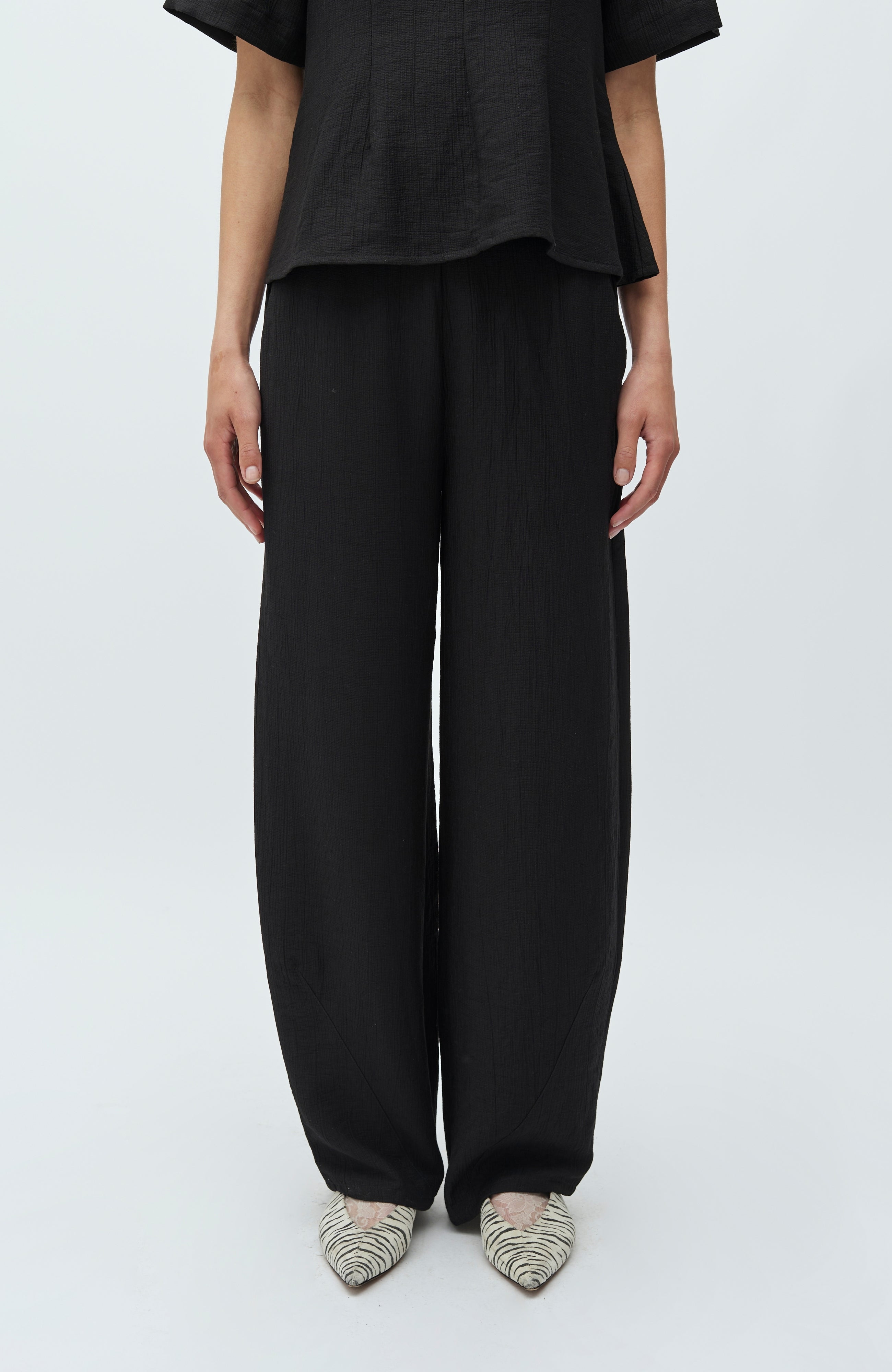 Loose trousers with an elastic waistband.
