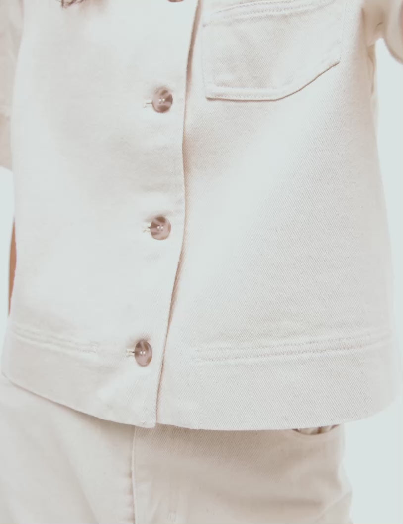 - Closes with zipper and button