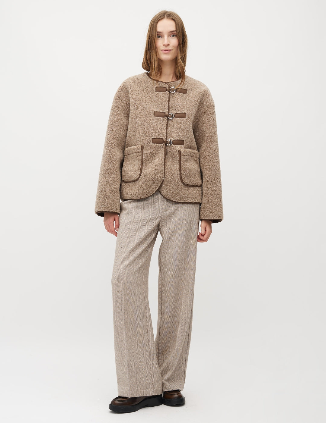 Teddy jacket with buckles.