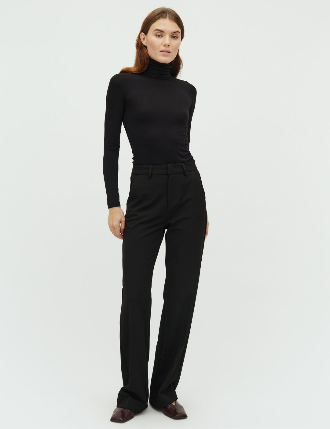 Suit trousers with straight legs.