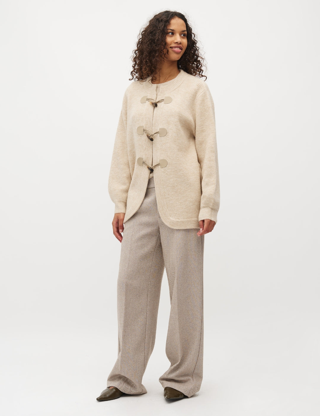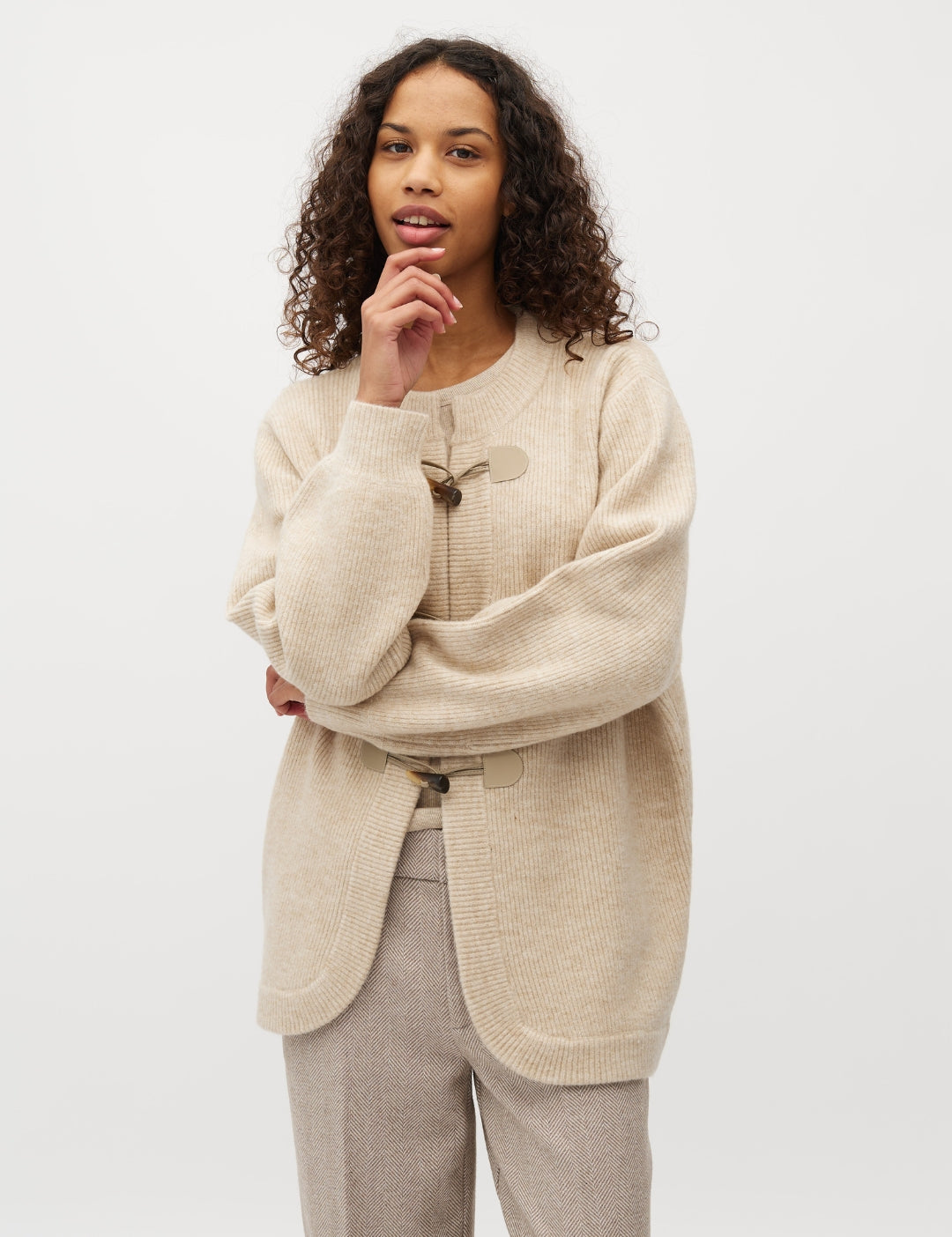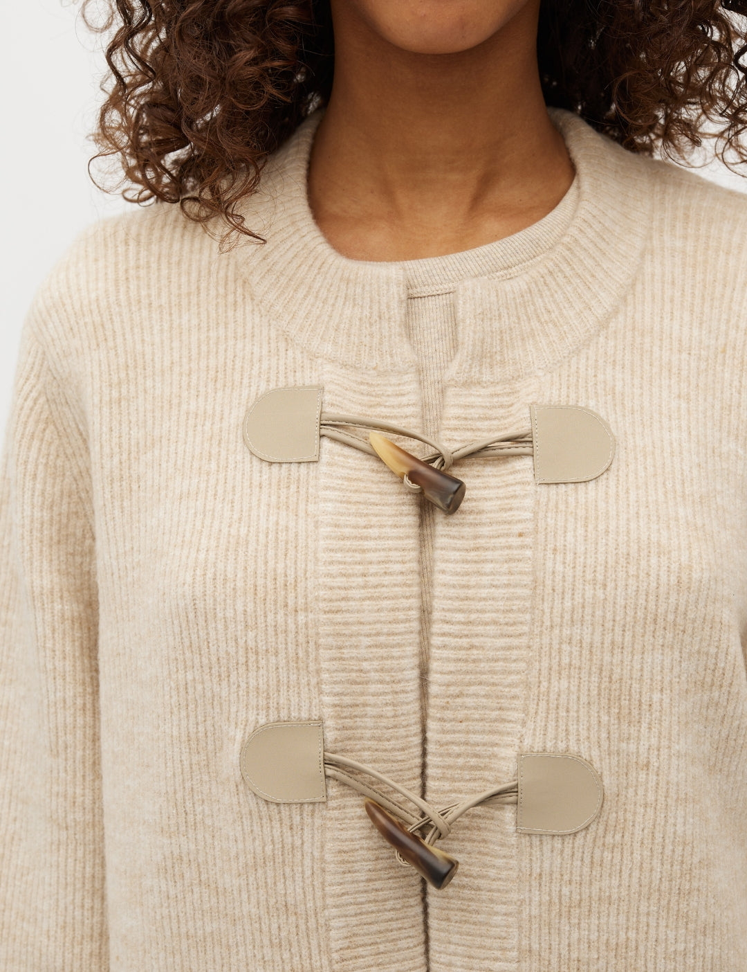 Knit cardigan with toggle fastening.