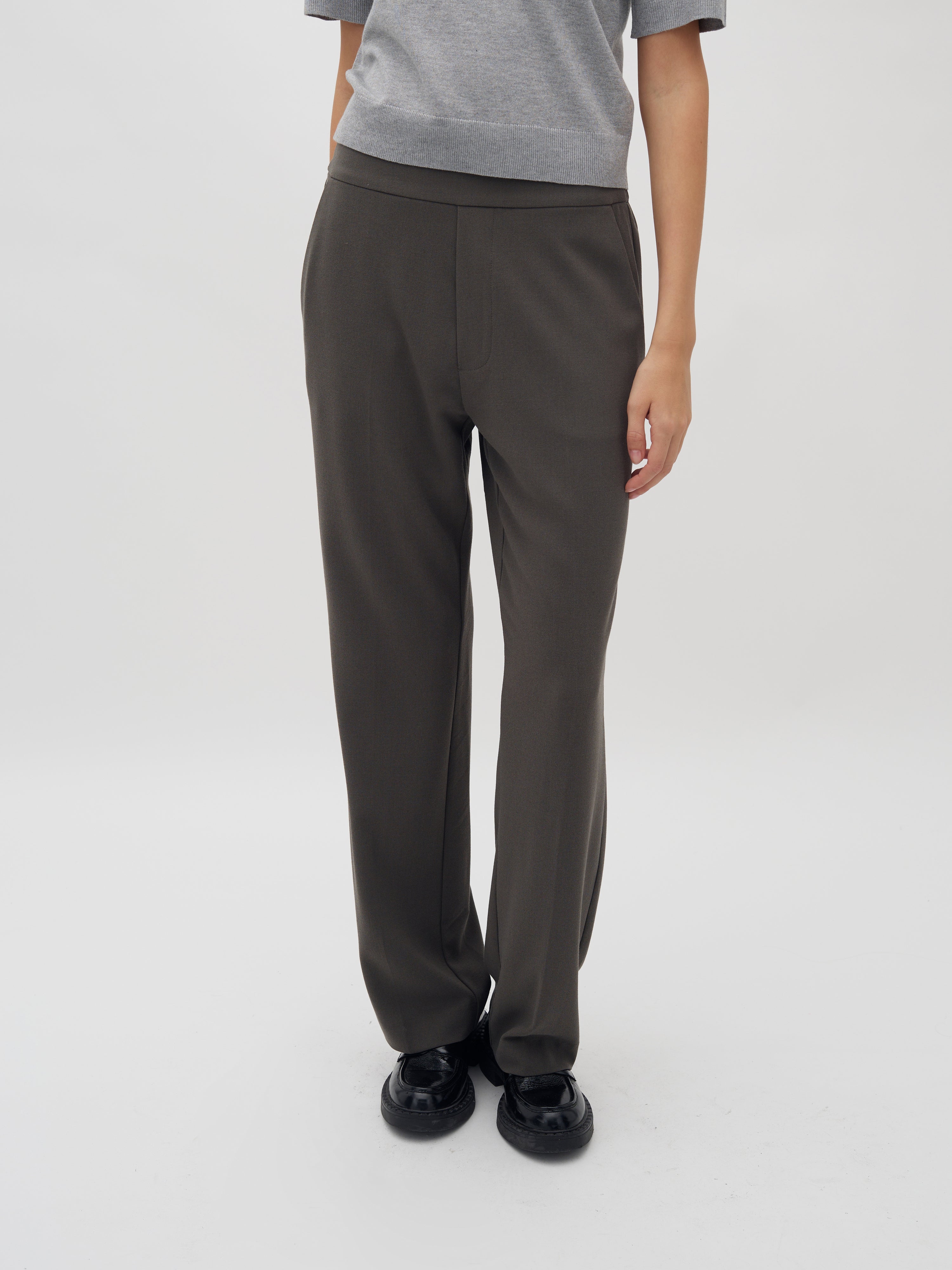 Trousers with straight legs and elastic waistband.