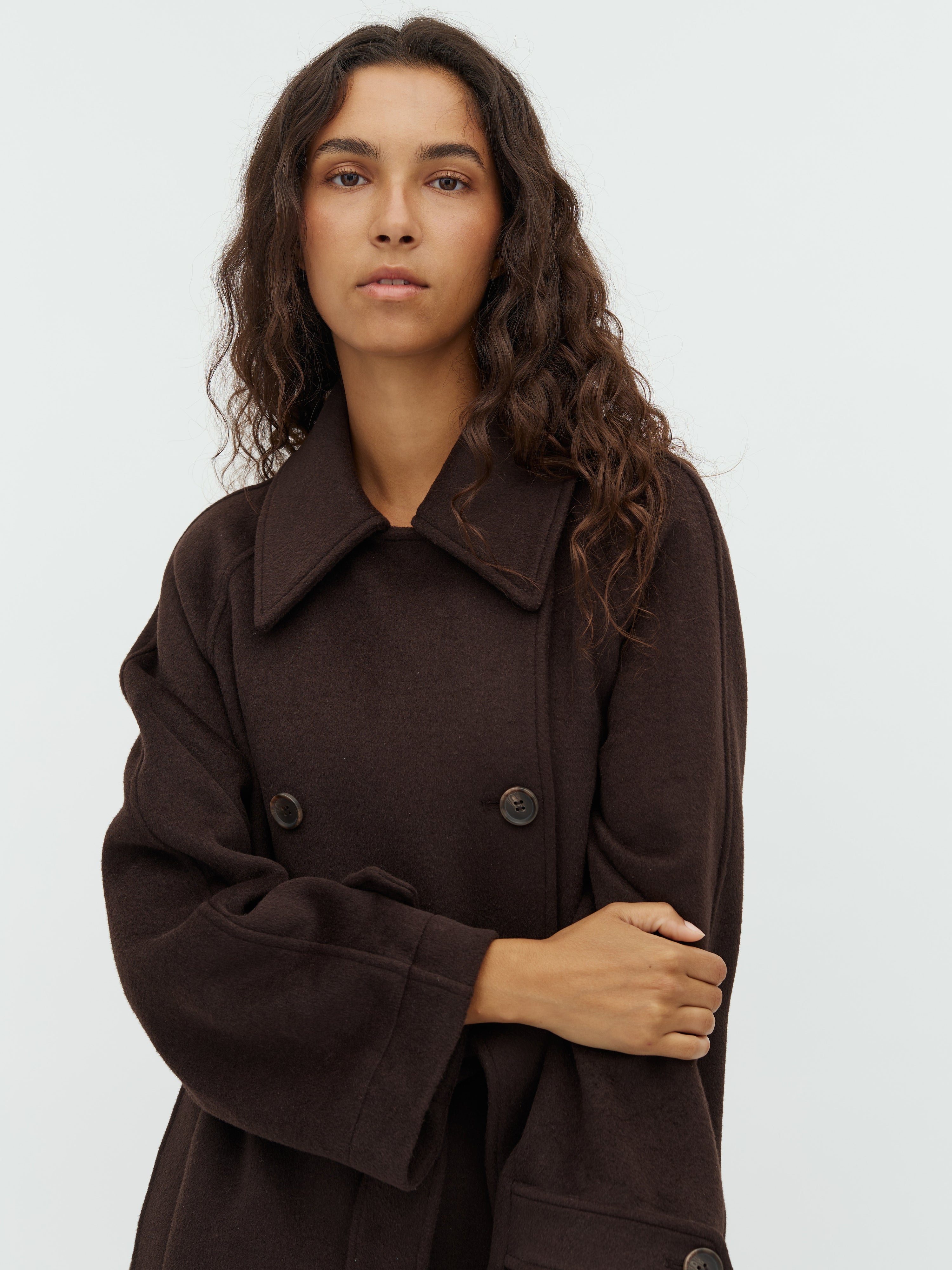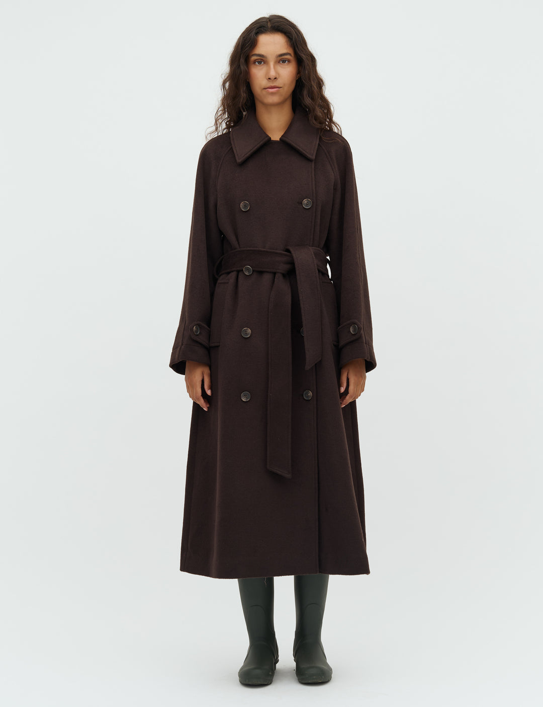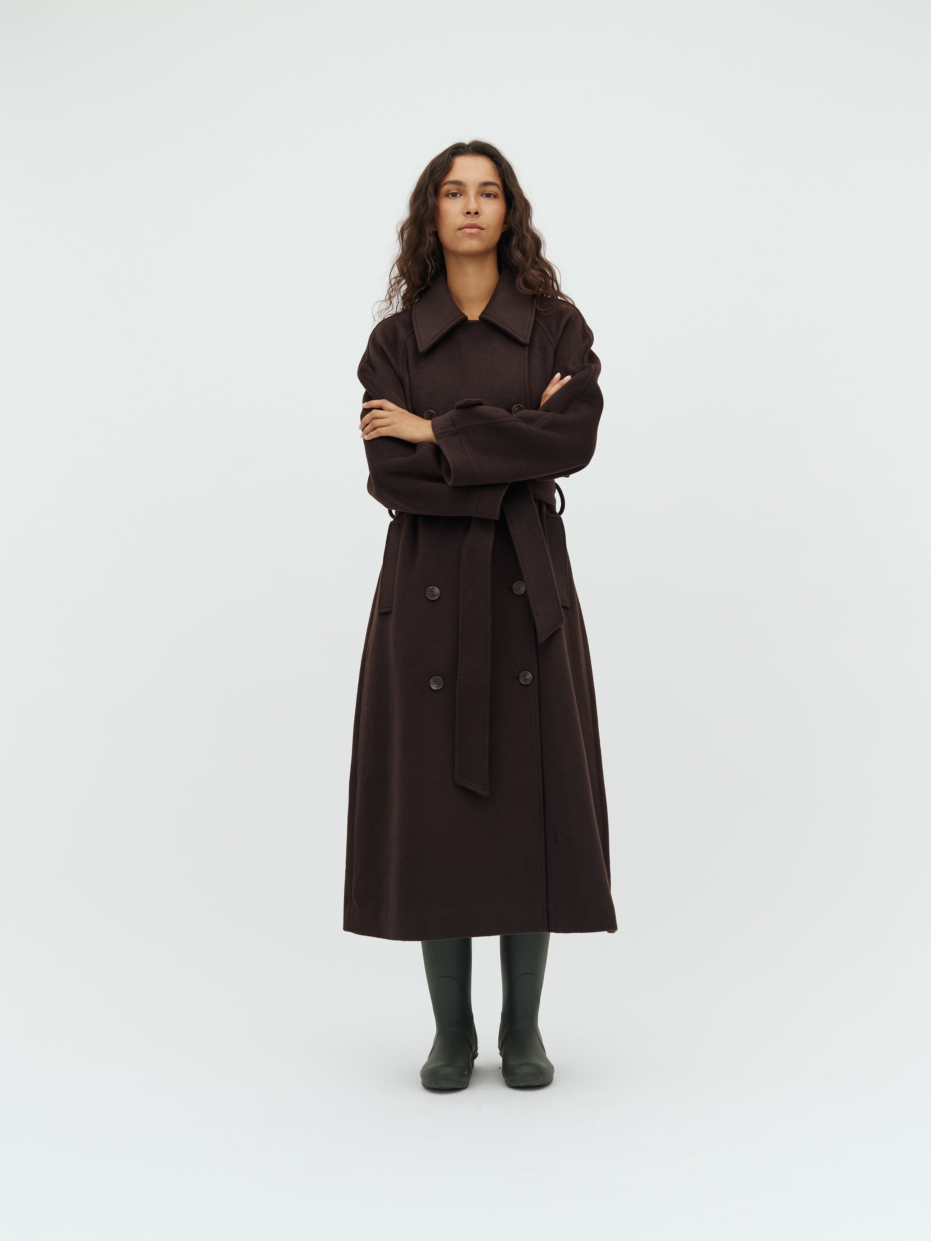 Midi coat with removable belt.