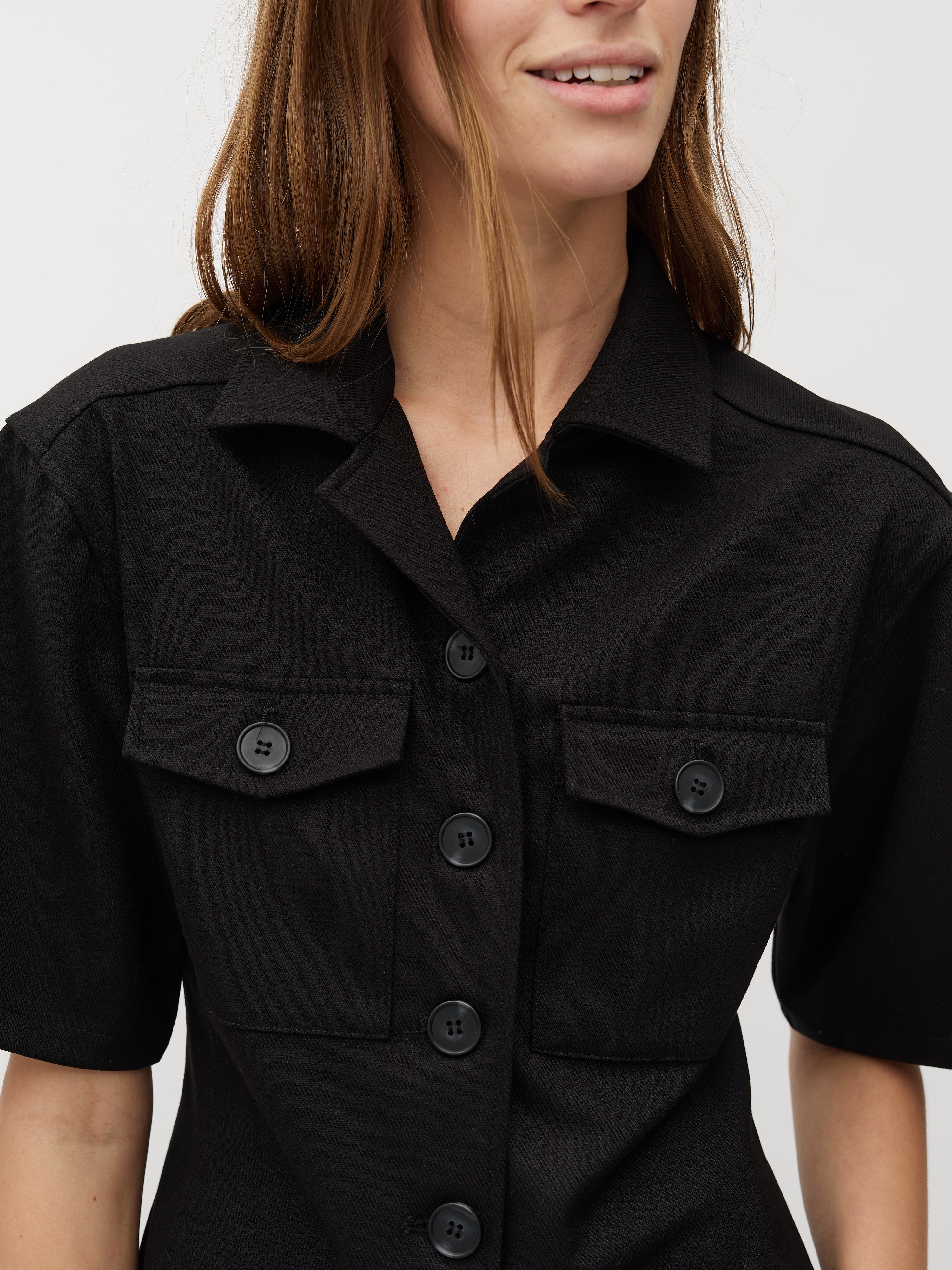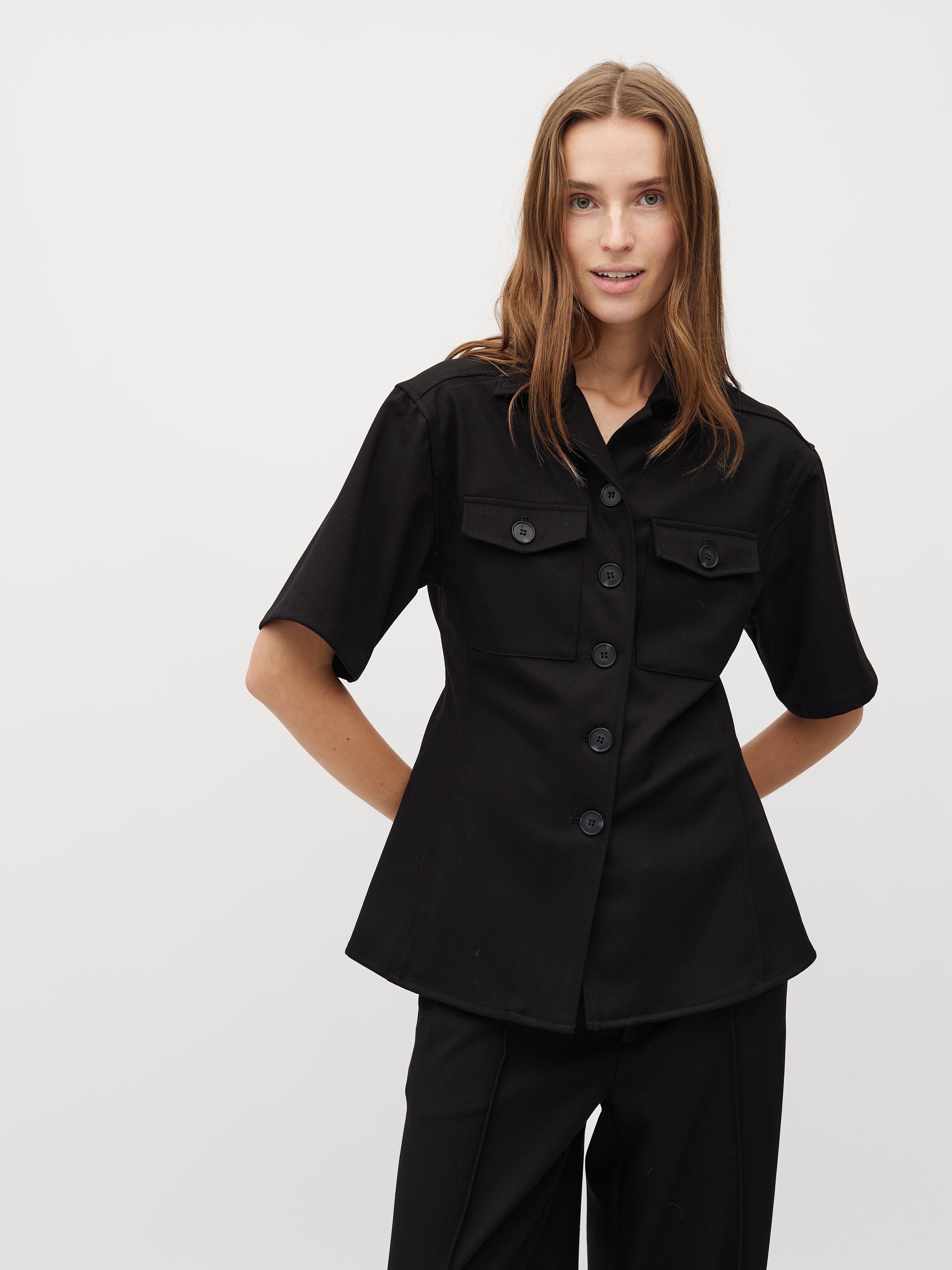 Shirt blouse with short sleeves.