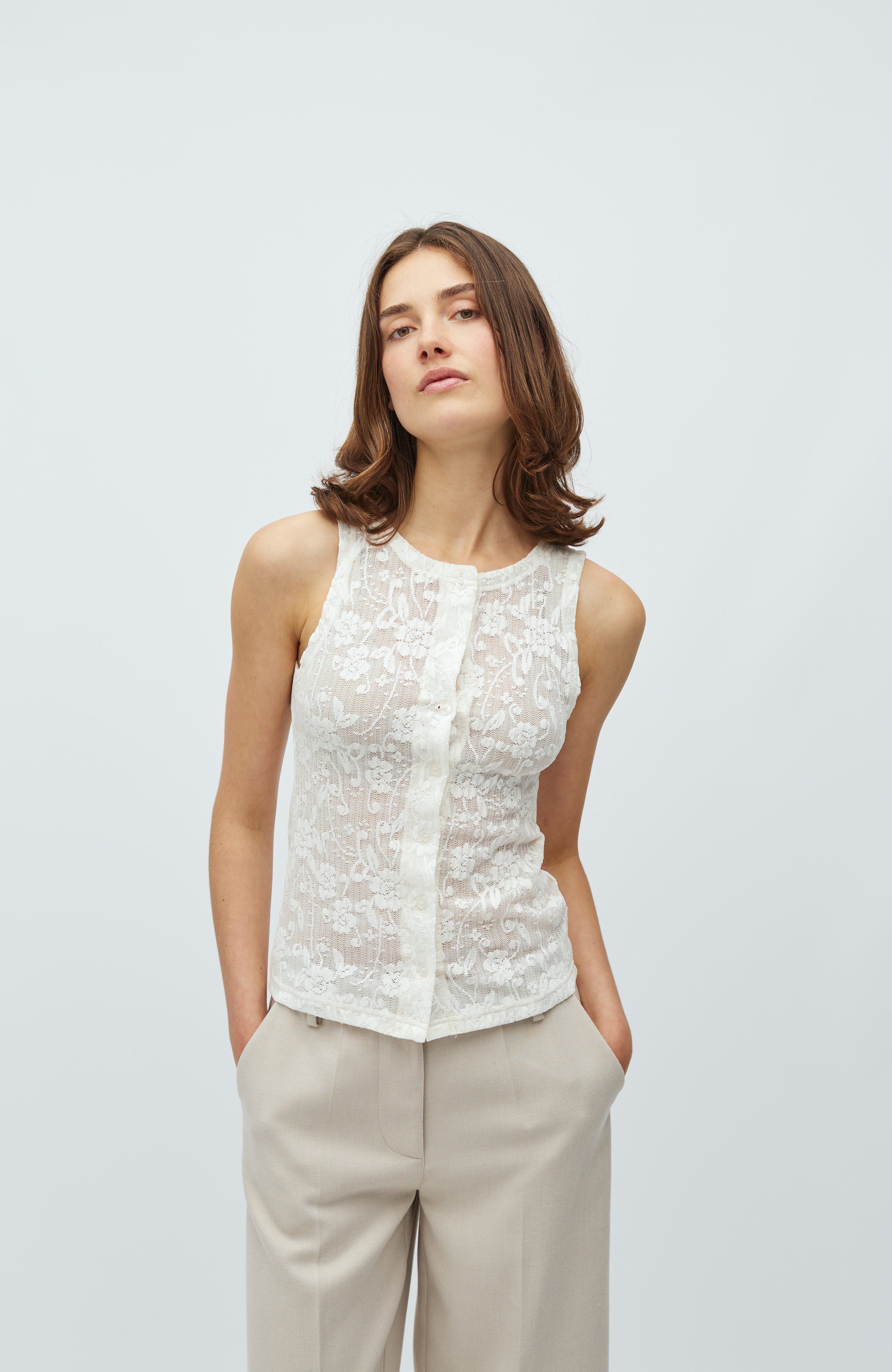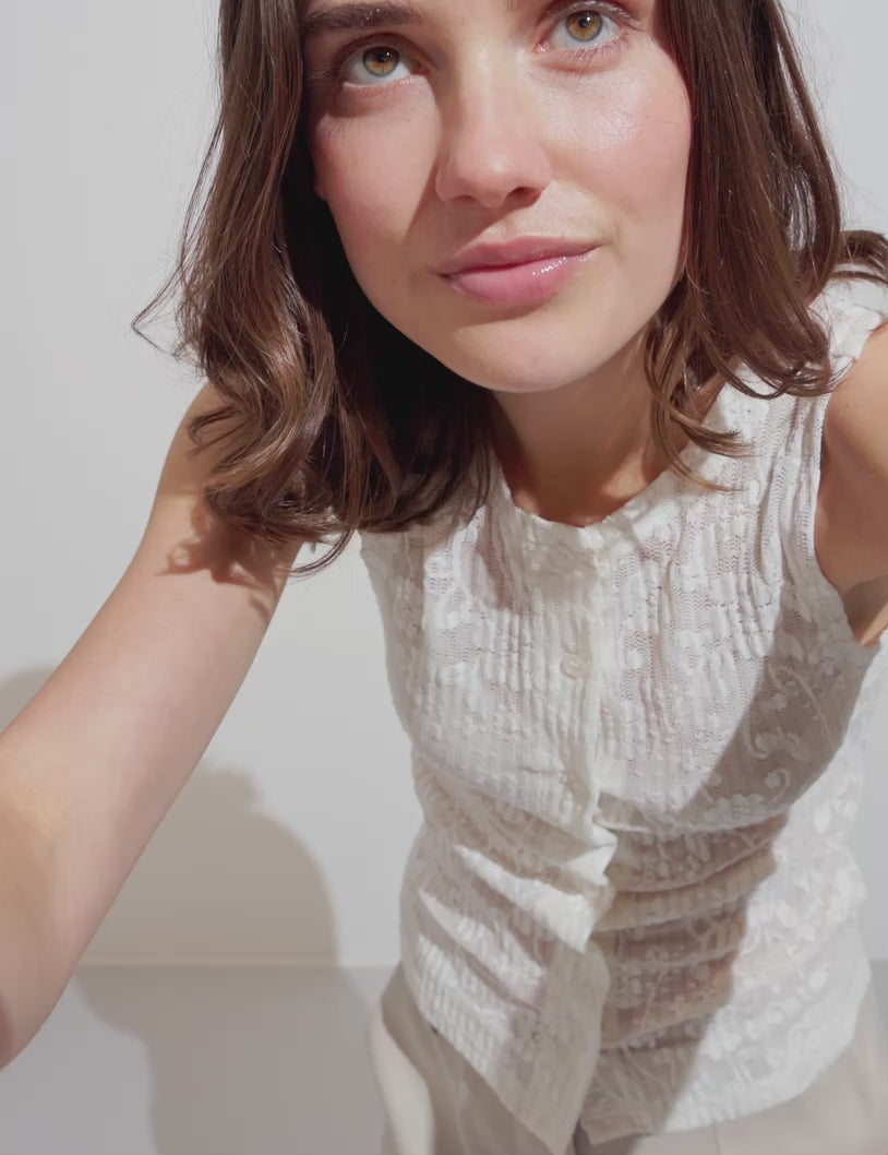 Transparent top in a floral pattern.