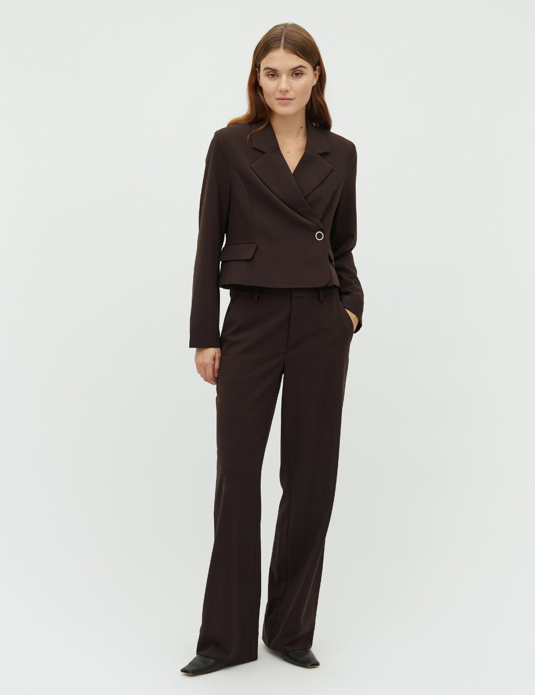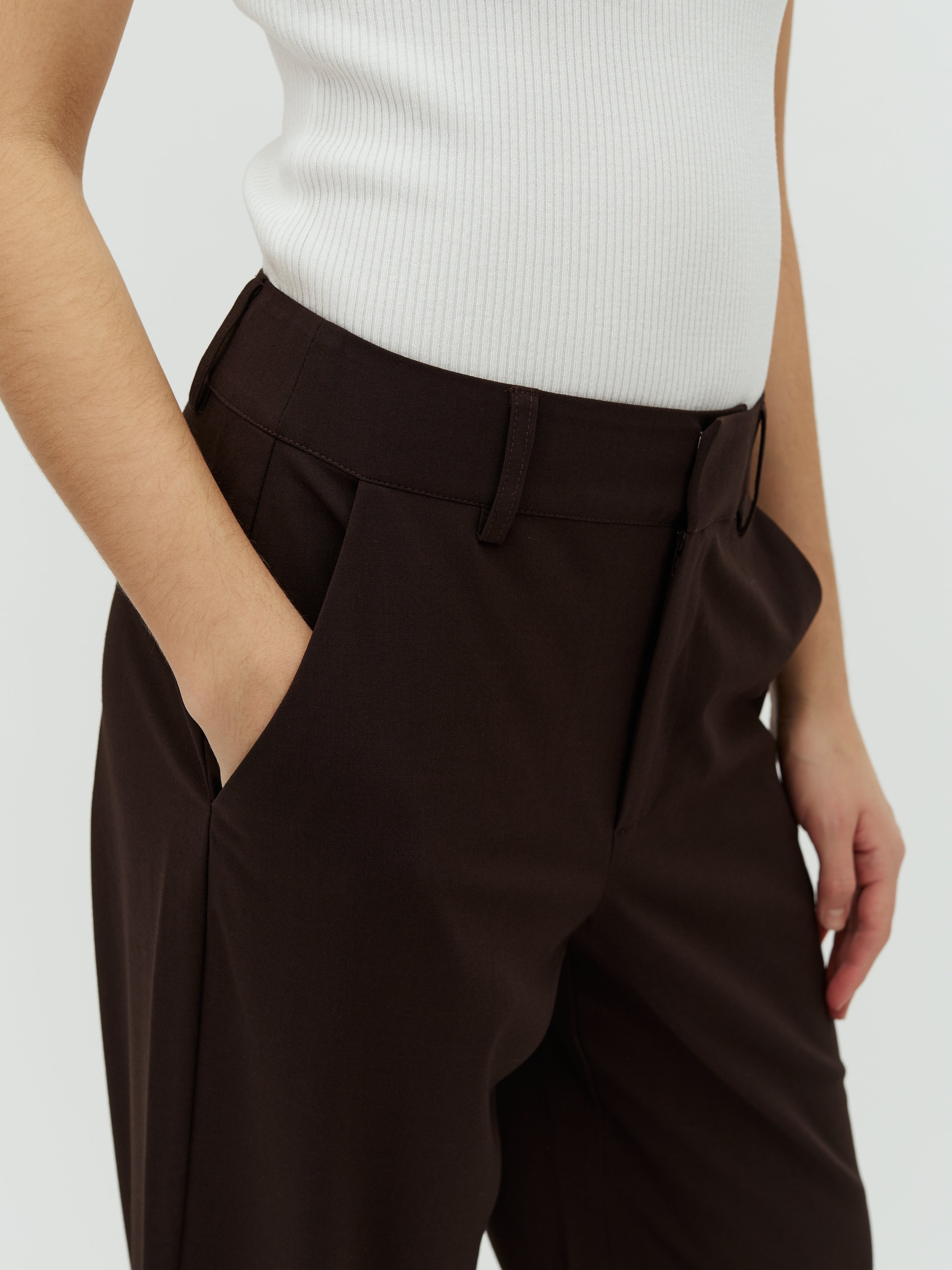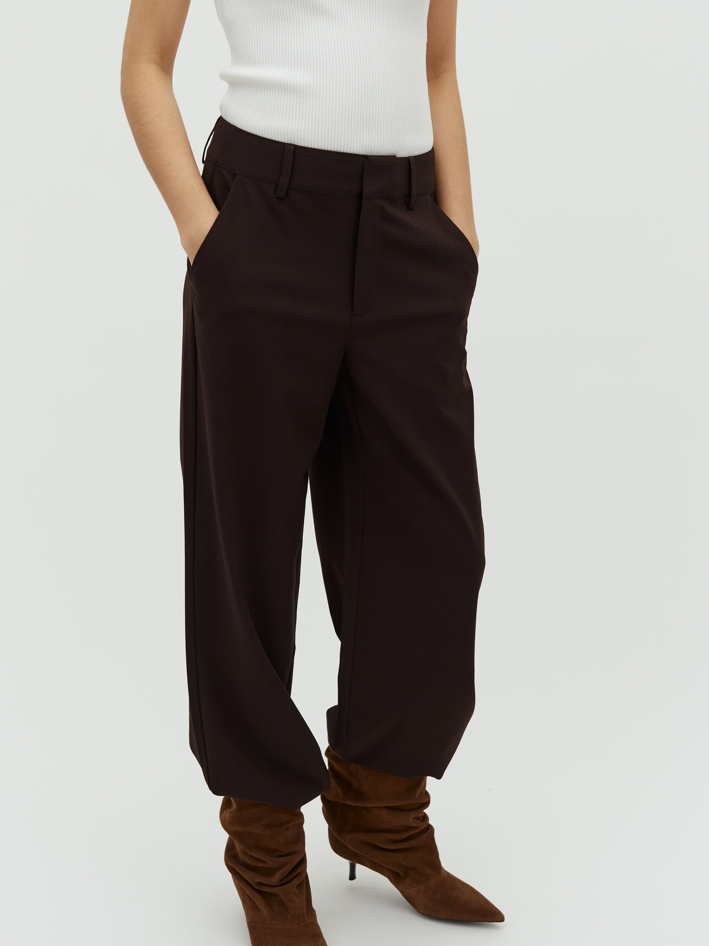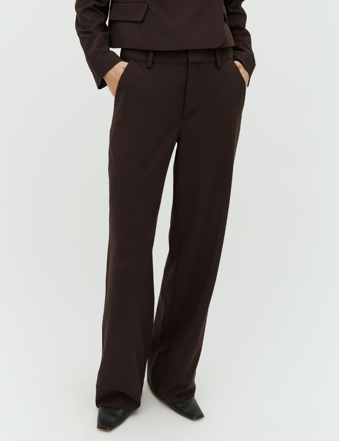 Straight leg trousers.