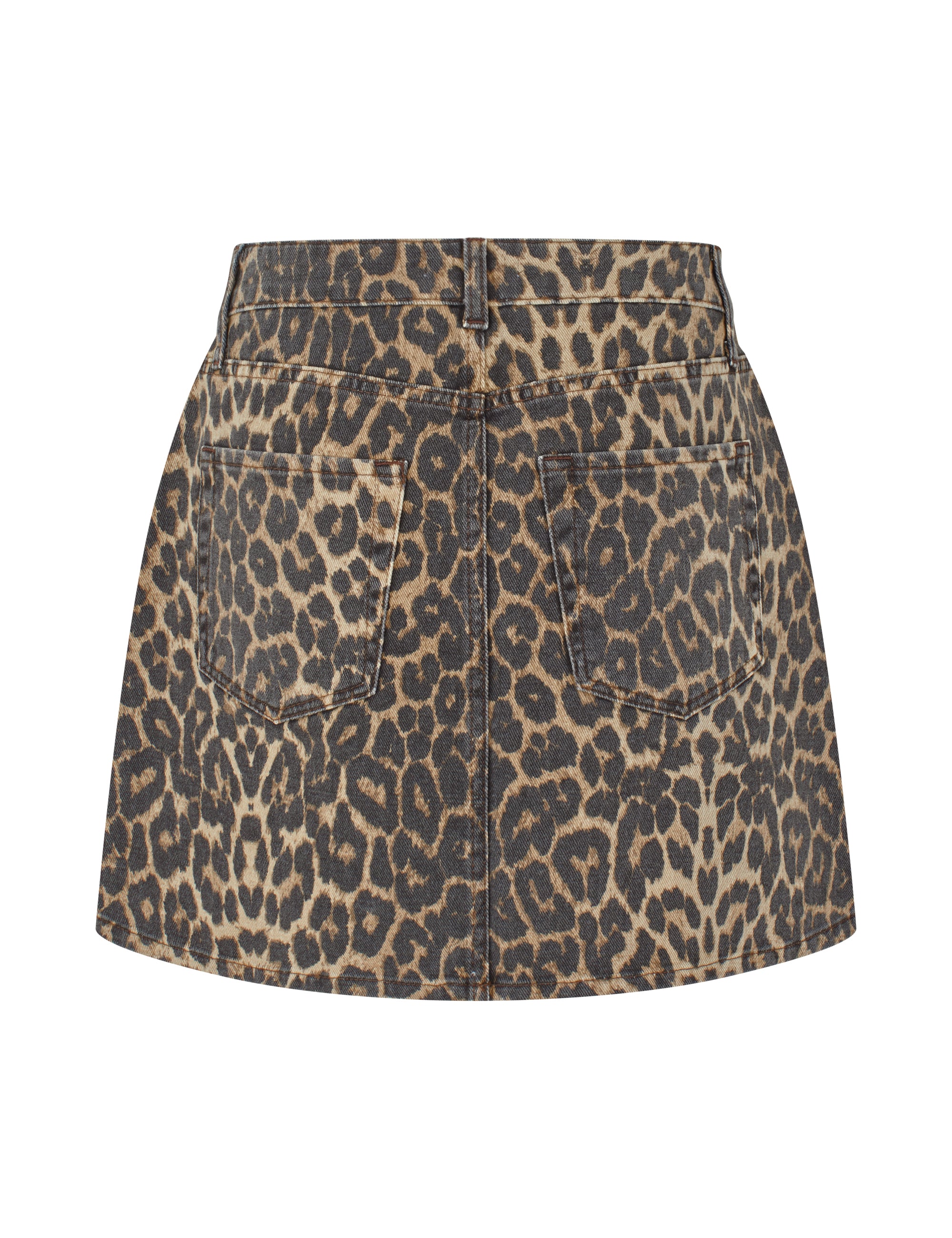 Mini denim skirt in leopard print.