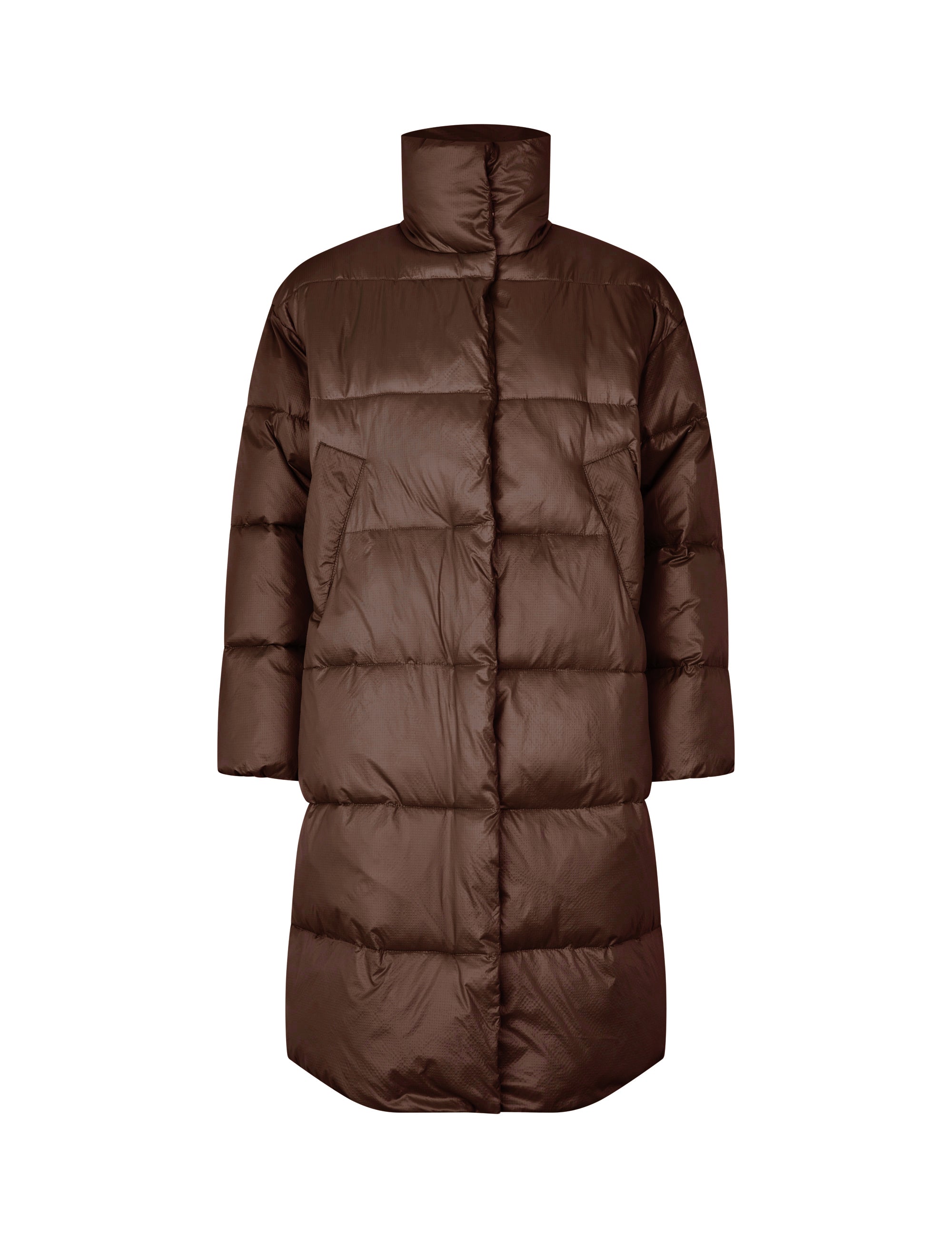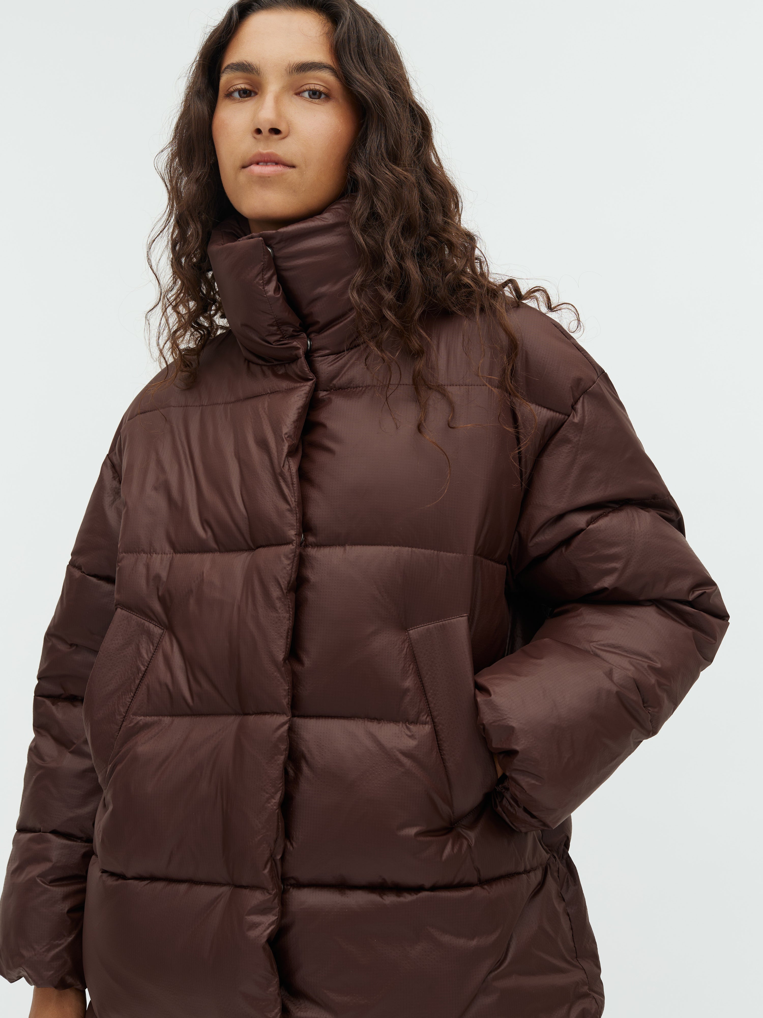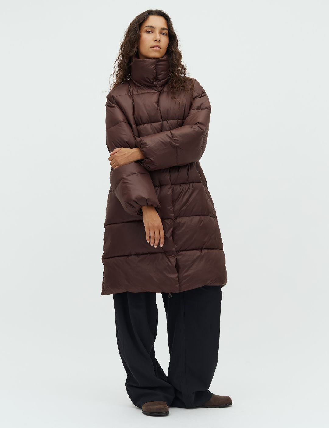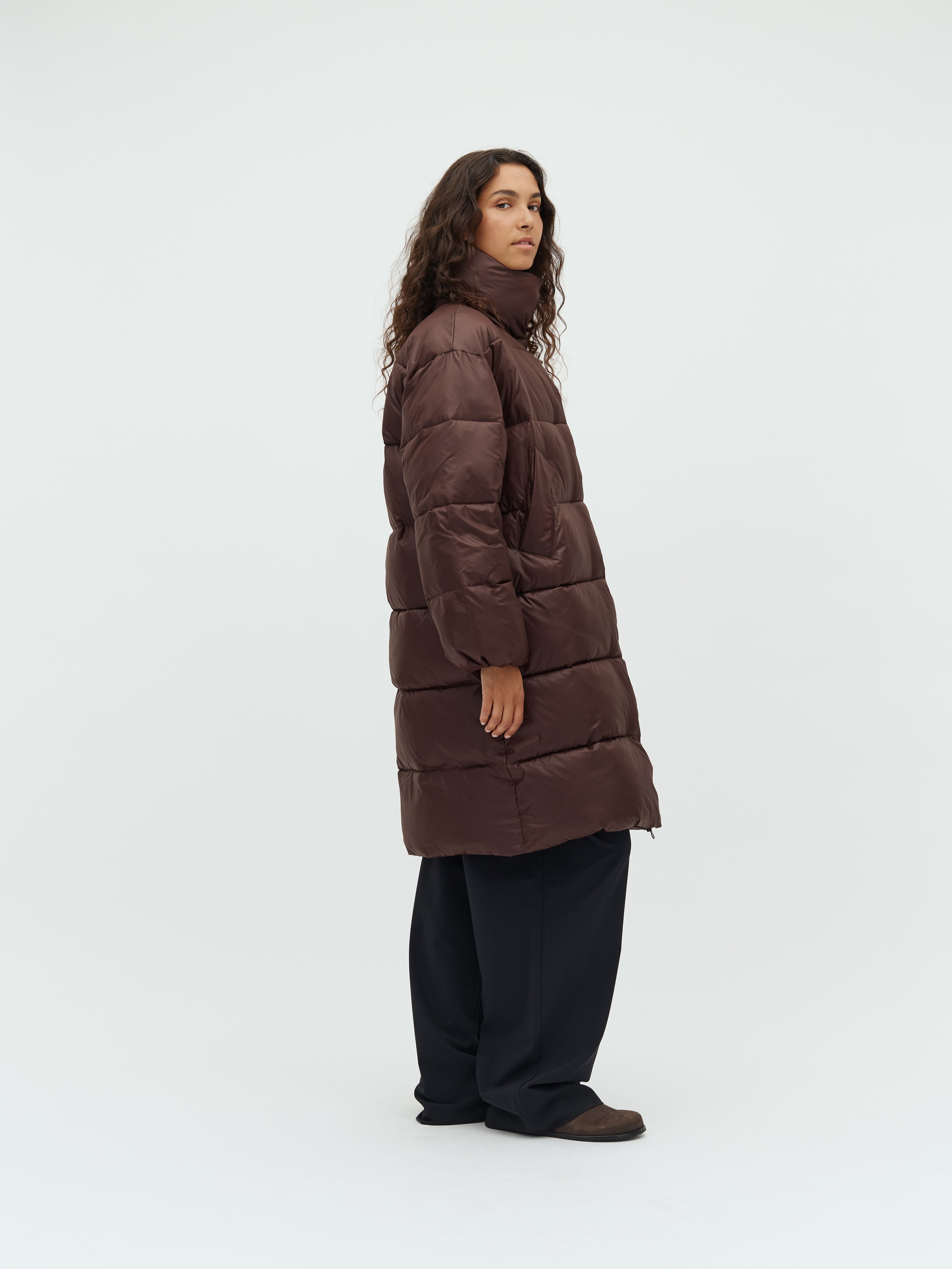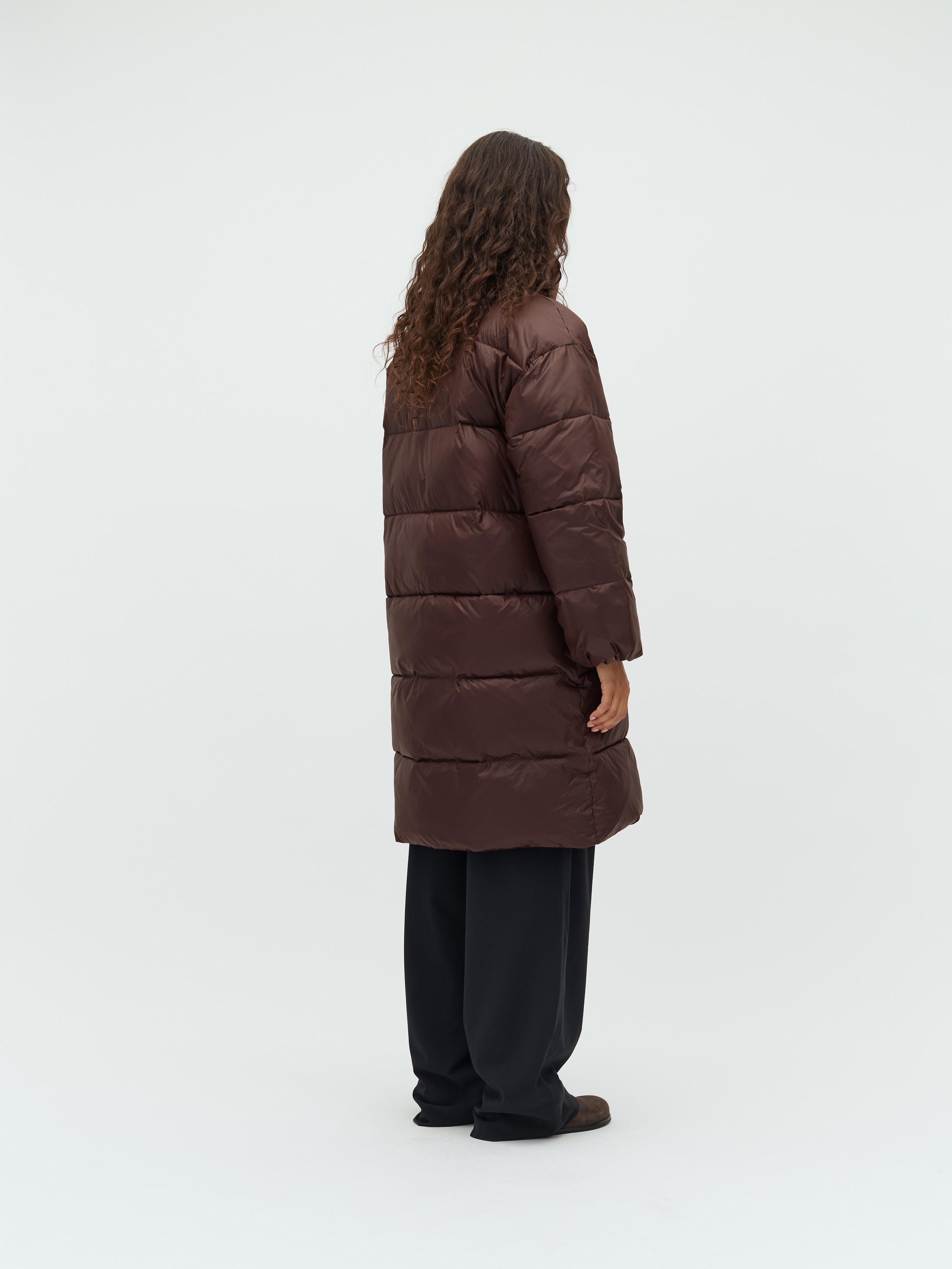 Long puffer jacket.