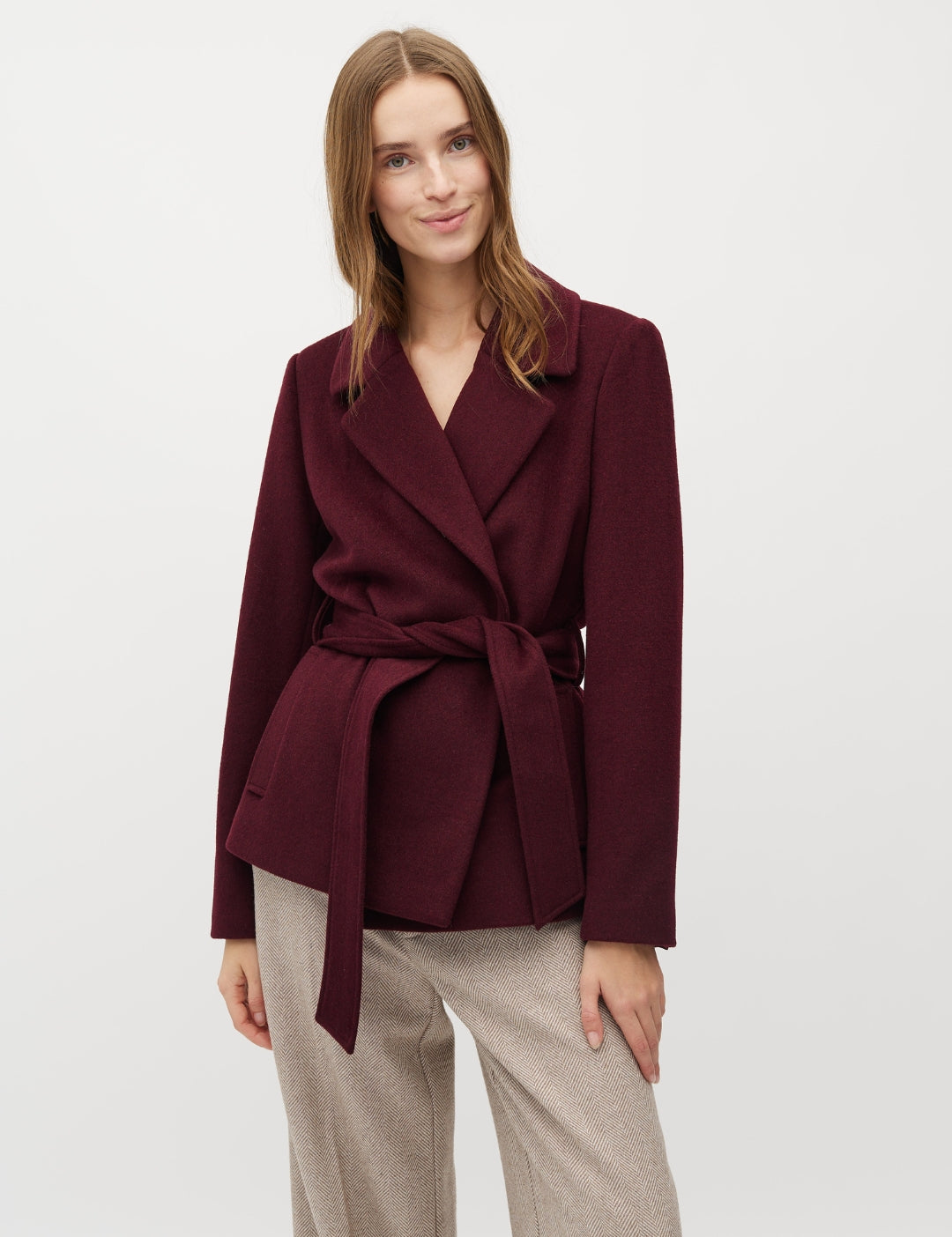 Coat in a warm wool blend.