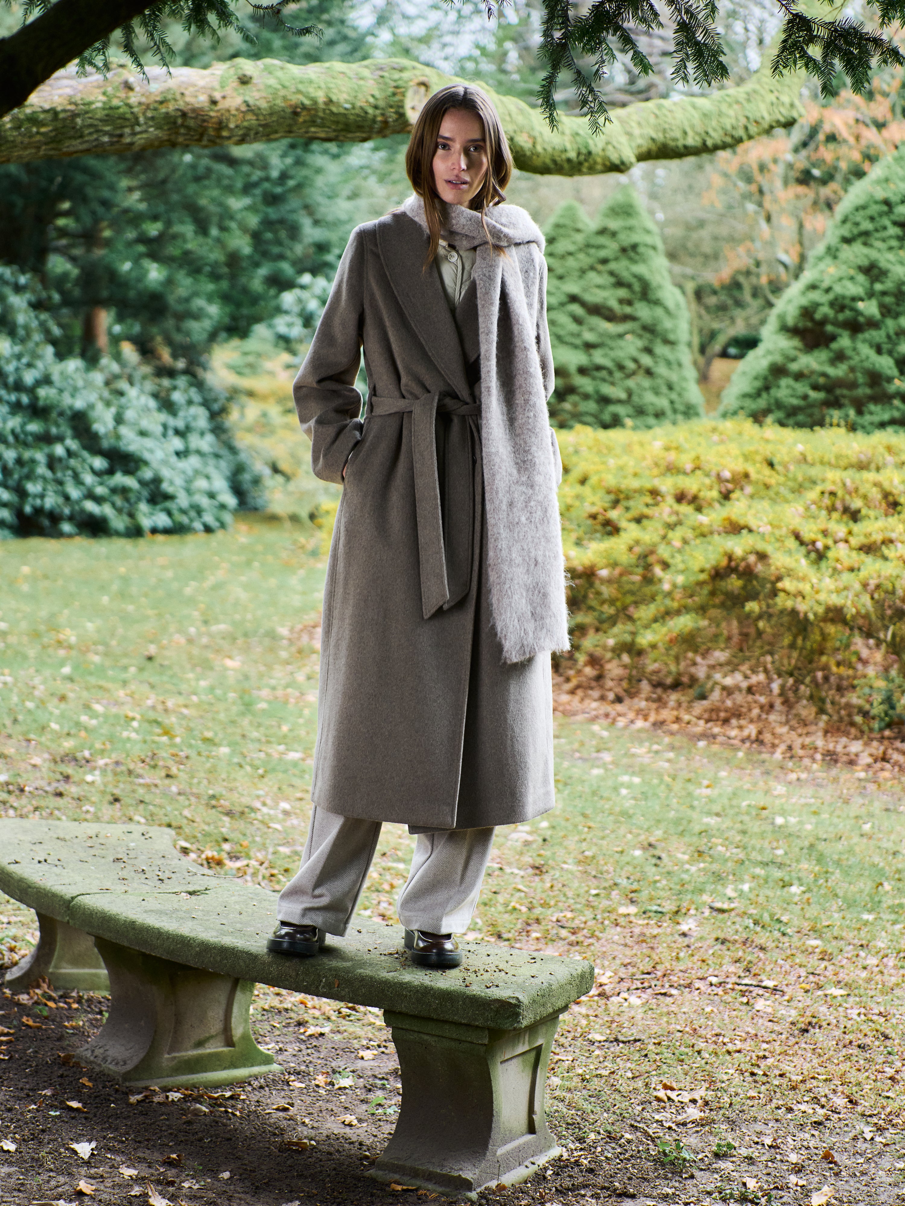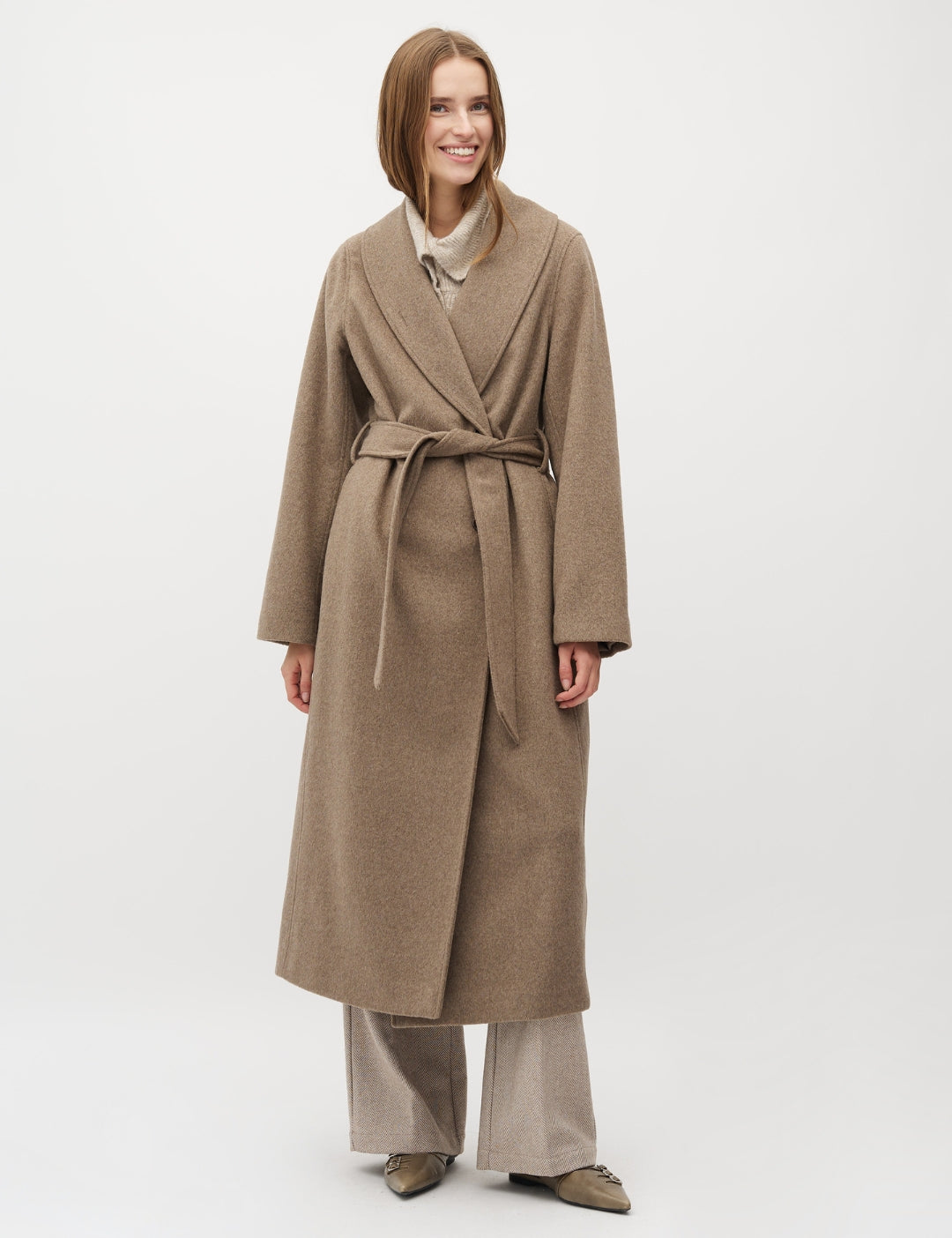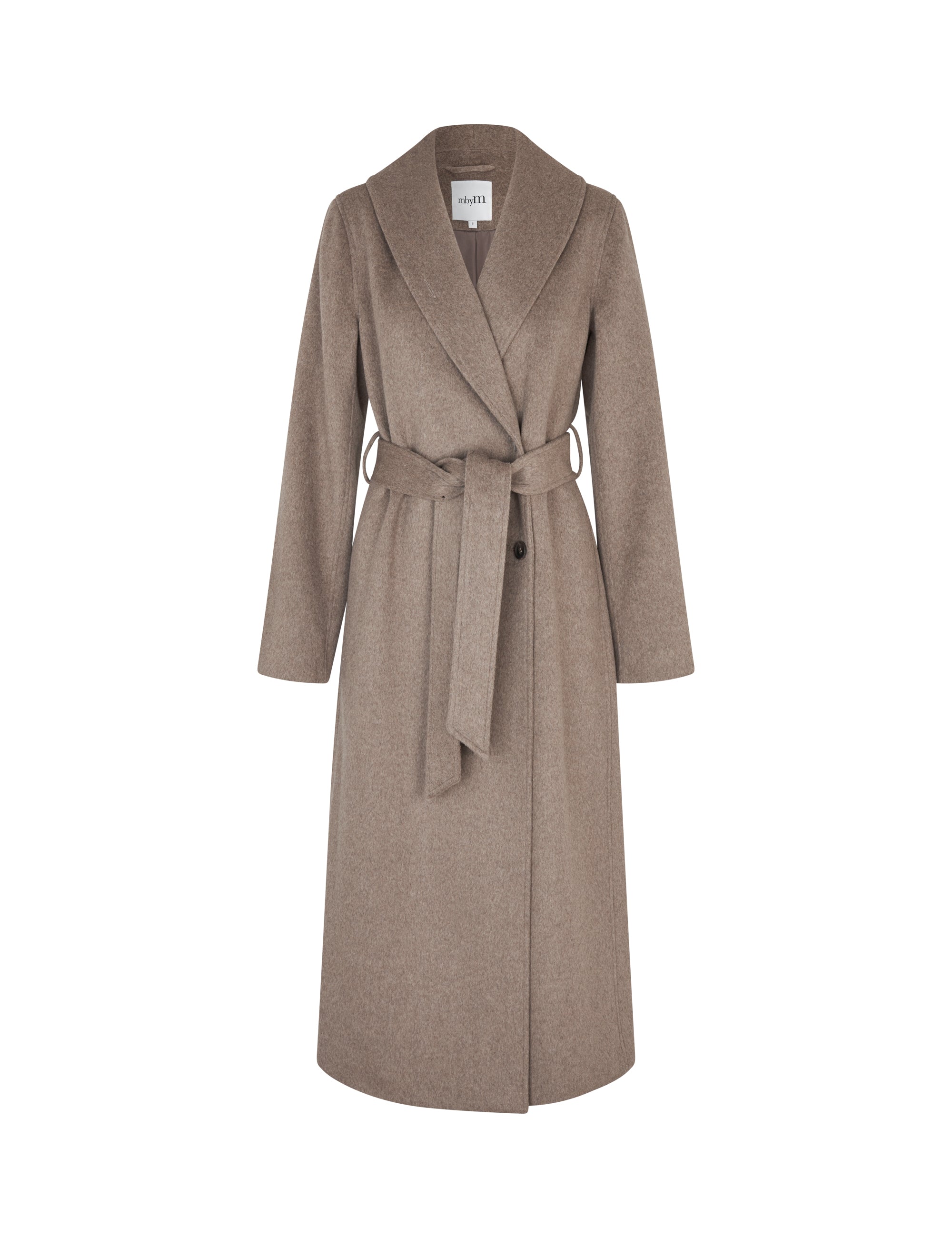 Belted long coat.
